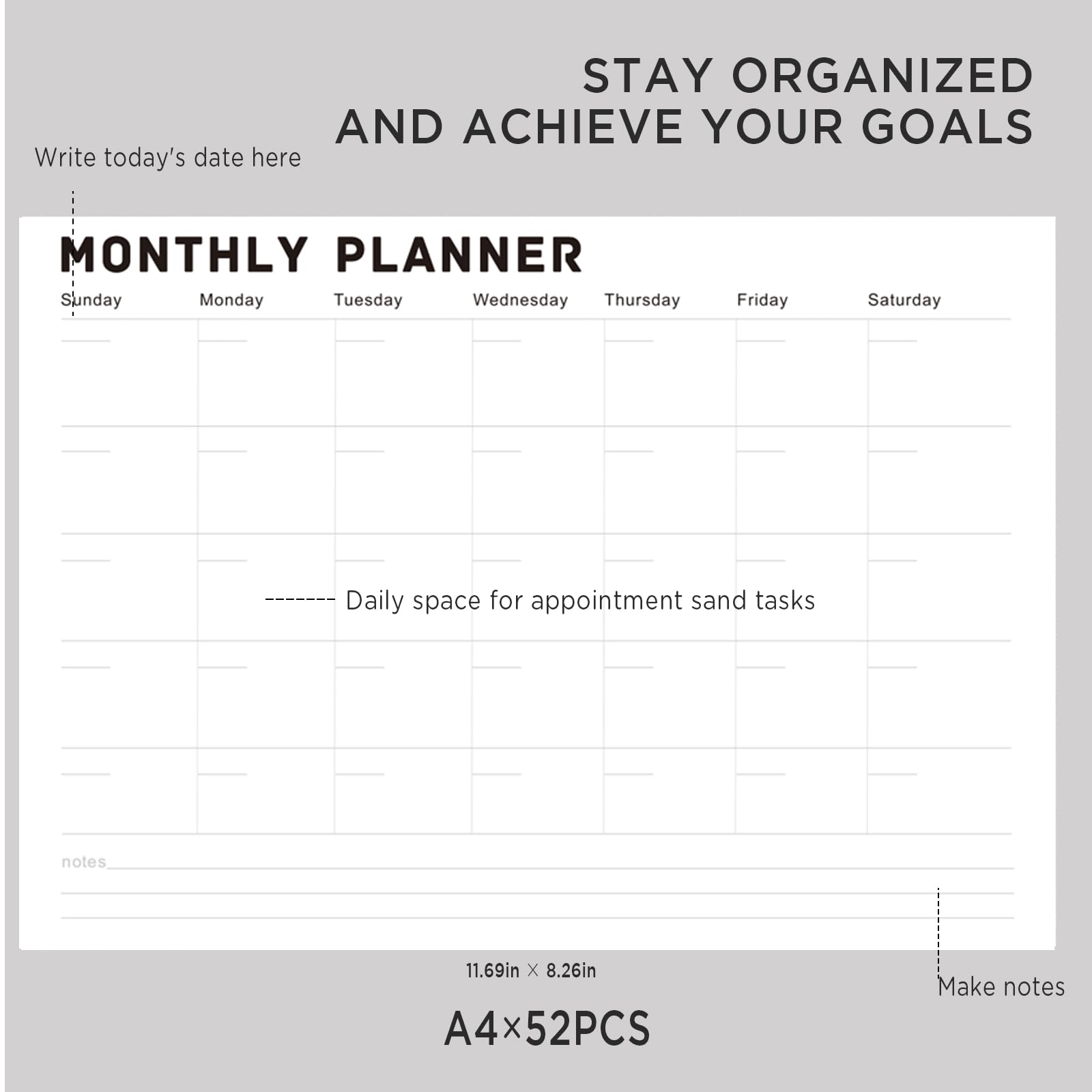 BBRGIRL Monthly Planner Notepad - Undated Monthly Planner with 52 Sheets Monthly Calendar Notepad,Desk Planner for calendars, planners & organizers,A4,8" x 11",52 Sheets