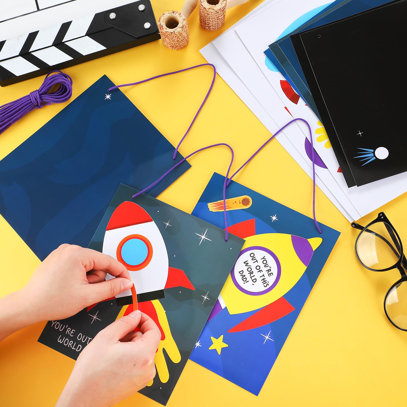 - Father’s Day Craft Kit: you will receive 30 sets of Father’s Day handprint rocket sign craft kit, 6 styles, 5 pieces each, with 30 purple ropes for hanging decorations, and a rendering, enough quantity and style for every child to keep everyone engaged and is an ideal event for Father’s Day parties, family celebrations or classroom lessons