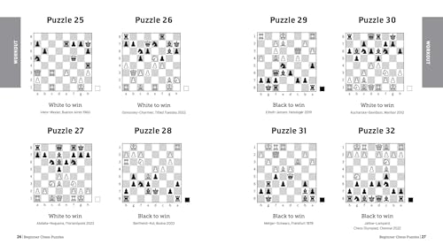 Build new chess skills and practice key tactics with these 500 entertaining, beginner chess exercises so you can improve your game. For new chess enthusiasts who are eager to practice and grow their skills, Beginner Chess Puzzles has hundreds of puzzles to up your game! 500 puzzles take you through all the tactical motifs that beginners need to know–the fundamentals (including capturing and defending pieces), tactics (forks, pins, and skewers, discovered attacks and checks, and removing the defense), and checkmate patterns. Including the basic instructions for how to solve chess puzzles, Beginner Chess Puzzles is packed with clear and detailed explanations of each key tactical motif and pattern with puzzles to practice each. As players advance through the lessons, they’ll gain confidence as puzzles gradually increase in difficulty. “Workout” sections throughout include puzzles that practice any of the skills learned up to that point; without additional information, players must detect which motifs need to be deployed–much like in an actual chess game. Clear chessboard diagrams allow players to picture every puzzle, and the detailed answer key carefully explains how to get to the best solution. Allowing new players to improve skills on their own, offline, and in a take-anywhere format, Beginner Chess Puzzles is the perfect gift for chess fanatics of any age.