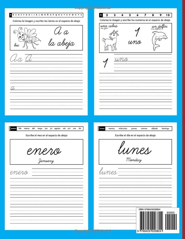 This workbook helps students practice and master cursive handwriting in both English and Spanish.