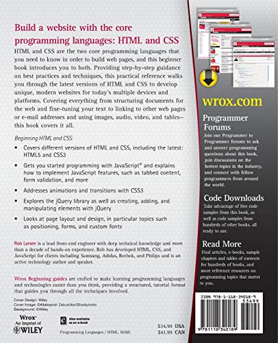 Everything you need to build websites with the newest versions of HTML and CSS If you develop websites, you know that the goal posts keep moving, especially now that your website must work on not only traditional desktops, but also on an ever-changing range of smartphones and tablets. This step-by-step book efficiently guides you through the thicket. Teaching you the very latest best practices and techniques, this practical reference walks you through how to use HTML5 and CSS3 to develop attractive, modern websites for today’s multiple devices. From handling text, forms, and video, to implementing powerful JavaScript functionality, this book covers it all. Serves as the ultimate beginners guide for anyone who wants to build websites with HTML5 and CSS3, whether as a hobbyist or aspiring professional developer Covers the basics, including the different versions of HTML and CSS and how modern websites use structure and semantics to describe their contents Explains core processes, such as marking up text, images, lists, tables, forms, audio, and video Delves into CSS3, teaching you how to control or change the way your pages look and offer tips on how to create attractive designs Explores the jQuery library and how to implement powerful JavaScript features, such as tabbed content, image carousels, and more Get up to speed on HTML5, CSS3, and today’s website design with this practical guide. Then, keep it on your desk as a reference!