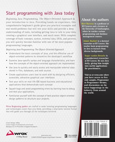 A comprehensive Java guide, with samples, exercises, case studies, and step-by-step instruction Beginning Java Programming: The Object Oriented Approach is a straightforward resource for getting started with one of the world’s most enduringly popular programming languages. Based on classes taught by the authors, the book starts with the basics and gradually builds into more advanced concepts. The approach utilizes an integrated development environment that allows readers to immediately apply what they learn, and includes step-by-step instruction with plenty of sample programs. Each chapter contains exercises based on real-world business and educational scenarios, and the final chapter uses case studies to combine several concepts and put readers’ new skills to the test. Beginning Java Programming: The Object Oriented Approach provides both the information and the tools beginners need to develop Java skills, from the general concepts of object-oriented programming. Learn to: Understand the Java language and object-oriented concept implementation Use Java to access and manipulate external data Make applications accessible to users with GUIs Streamline workflow with object-oriented patterns The book is geared for those who want to use Java in an applied environment while learning at the same time. Useful as either a course text or a stand-alone self-study program, Beginning Java Programming is a thorough, comprehensive guide.