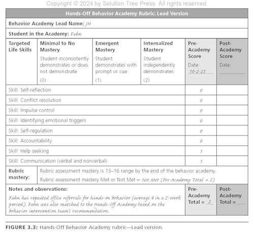 With student behavioral problems and teacher turnover at all-time highs, educators need behavioral interventions that work. With its practical behavior intervention method, this book replaces problematic behaviors with essential life skills for school and beyond. Educators can implement effective targeted interventions in twenty-five minutes or less using eight predefined behavior academies and a process to create their own. This book will help K-12 educators: Address their own beliefs about students’ challenging behavior Learn the eight behavior academies and their corresponding life skills Identify the core components of an academy’s initial, ongoing, and exit sessions Build their own behavior academy with a clearly outlined process Use behavior rehearsal cards for an academy’s ongoing sessions Contents: Introduction Chapter 1: Behavior Mindset Chapter 2: Behavior Academy Chapter 3: Behavior Academy Structure Chapter 4: Behavior Academy Rehearsal Cards Chapter 5: Build Your Own Behavior Academy Chapter 6: Frequently Asked Questions and Additional Tools