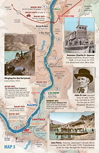Colorado River: Lees Ferry, Arizona, to Lake Mead, through Marble & Grand canyons, 288 miles. Highly detailed, easy-to-read maps. Illustrated sections on geology, natural history and archaeology, written by experts in these fields. Trip enrichment sections including a photo workshop and a section on how rivers and rapids work. Dramatically illustrated with full color diagrams and photographs. Now with USGS GCMRC miles. 120 pages.