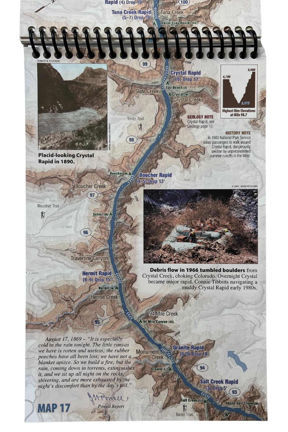 - INFORMATIVE DETAILED RIVER MAPS to guide you through the Canyon with beautiful shaded-relief topographic maps