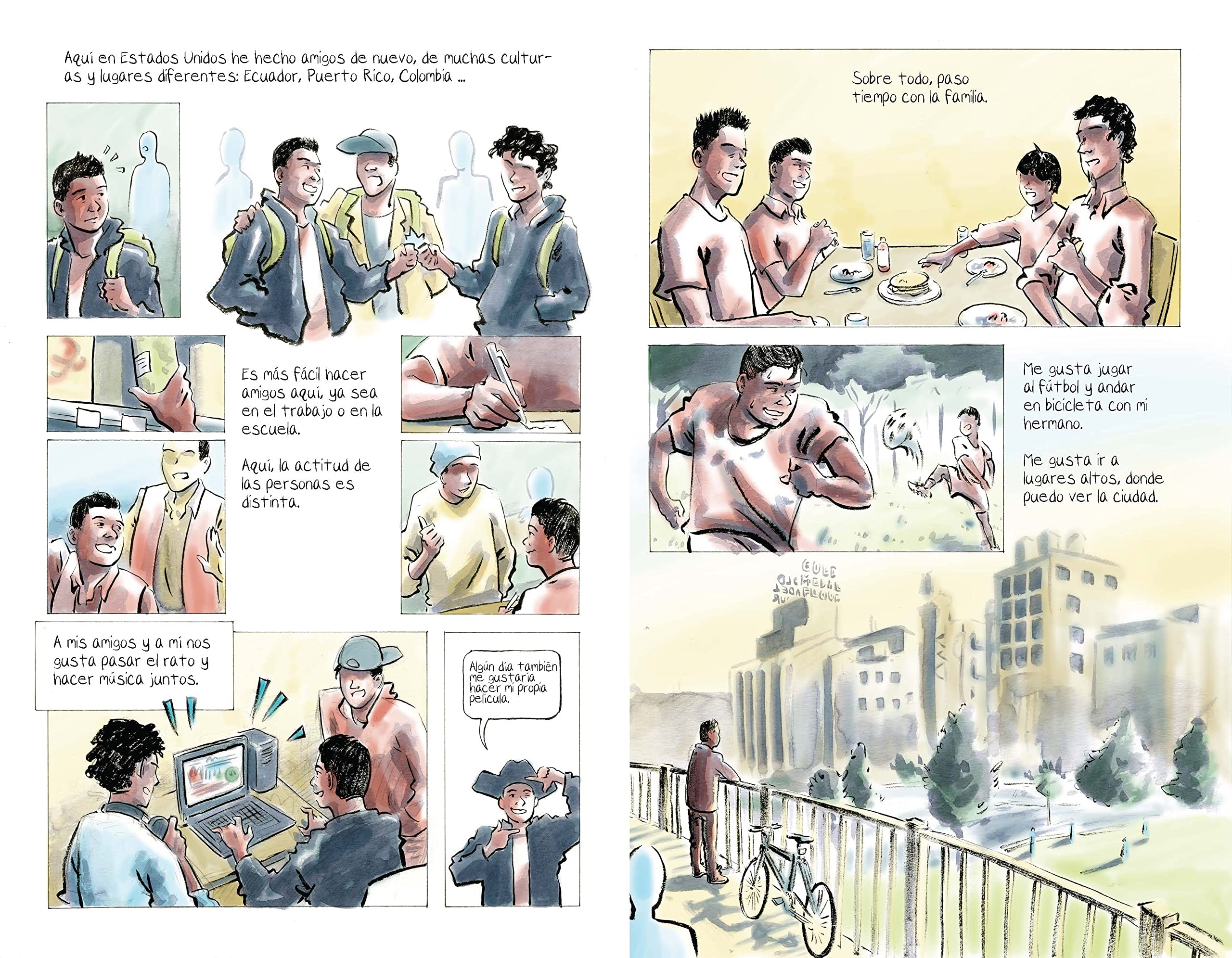 This graphic novel provides cultural and linguistic education by exploring themes of belonging in both English and Spanish.