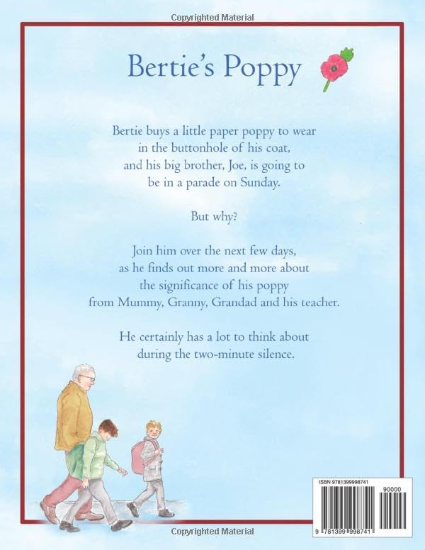 Bertie is excited for the parade on Sunday, but what does it have to do with the little paper flower that he bought on his way home yesterday? Over the next few days, he will find out more and more about the significance of his poppy, from Mummy, Granny, Grandad and his teacher. This delightfully illustrated story will take young children gently through the explanation of why we celebrate Remembrance Day each year, in a relatable way. Textless pages during the two-minute silence offer young readers a chance for quiet reflection, as they join Bertie whilst he thinks back on everything he has found out.