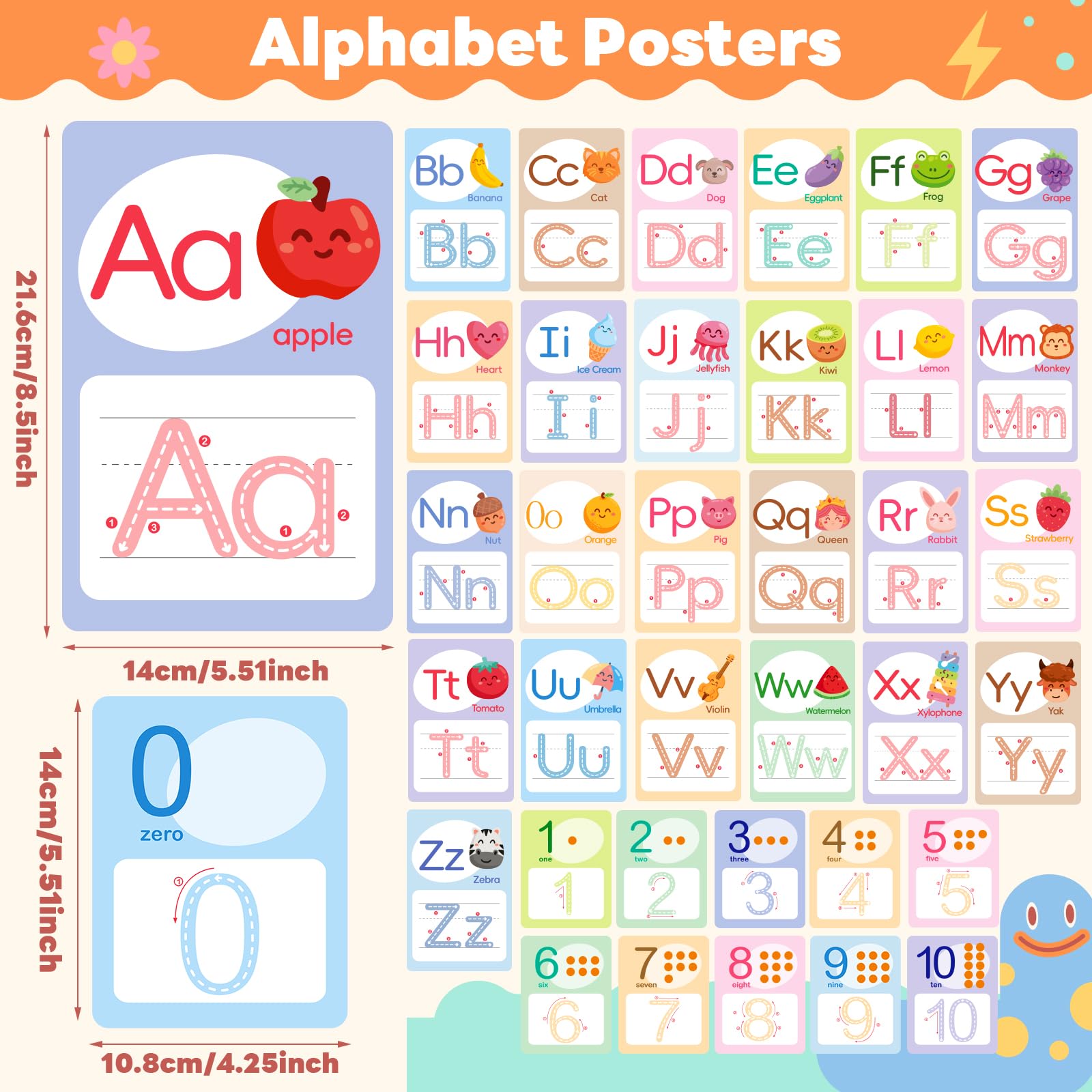 - Cute Color Design: The poster cards are elegant in color, vividly in pattern, and bold and cute in text, which can help kid concentrate, better remember and associate letters and numbers, and cultivate cognitive and writing skills.