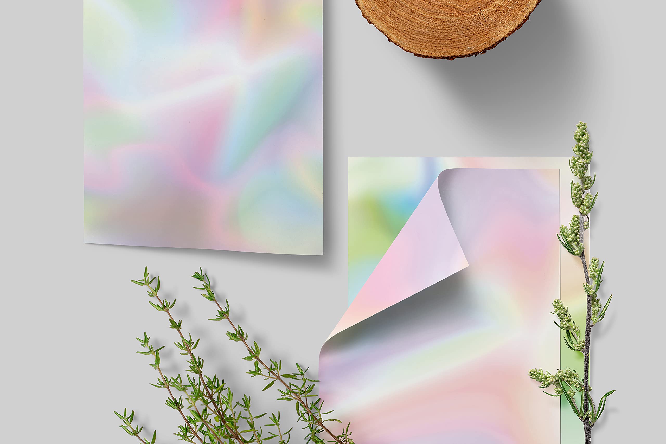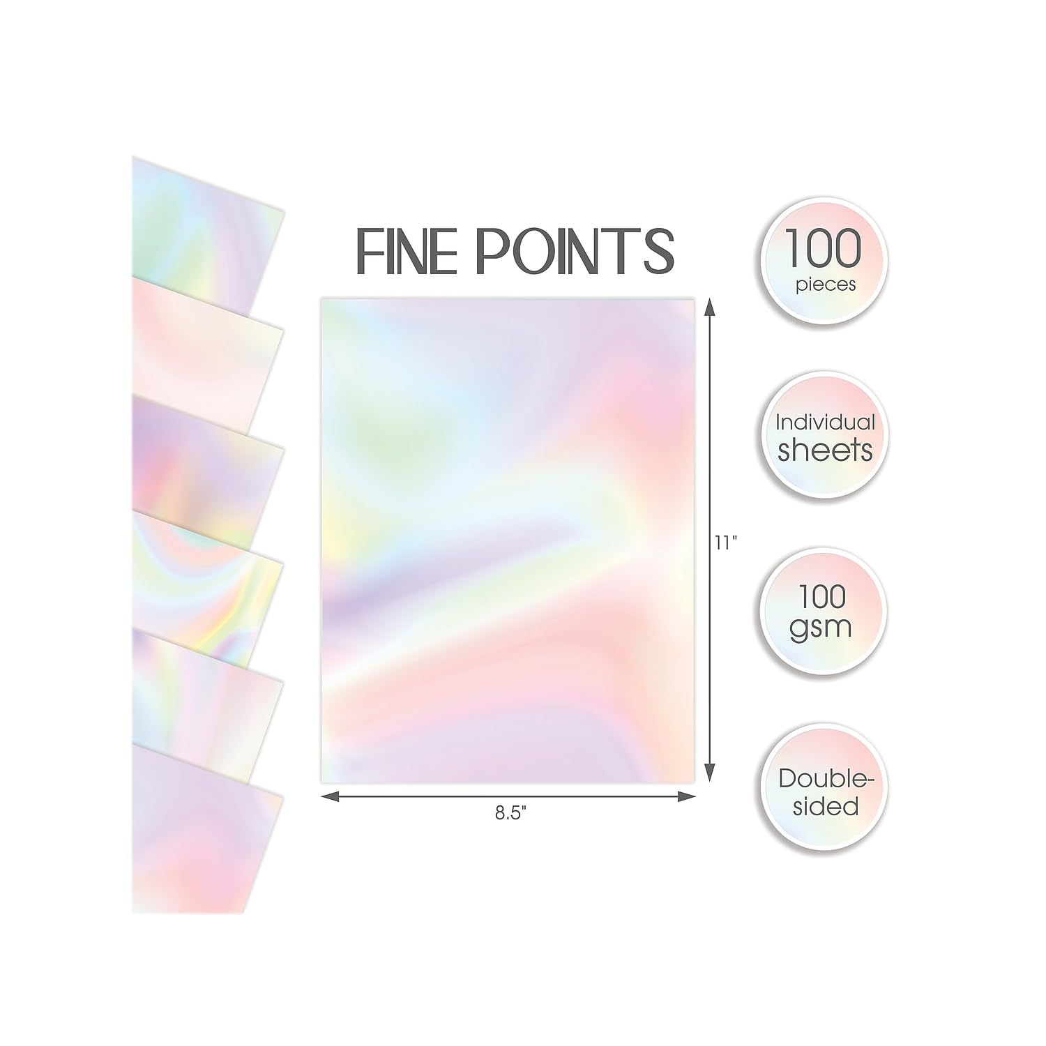 100-PACK – Letter size, 8.5″ x 11″ double-sided HALOGRAPHIC EFFECT watercolor designs in 6 unique print designs that allow your handwritten notes or printed text to standout