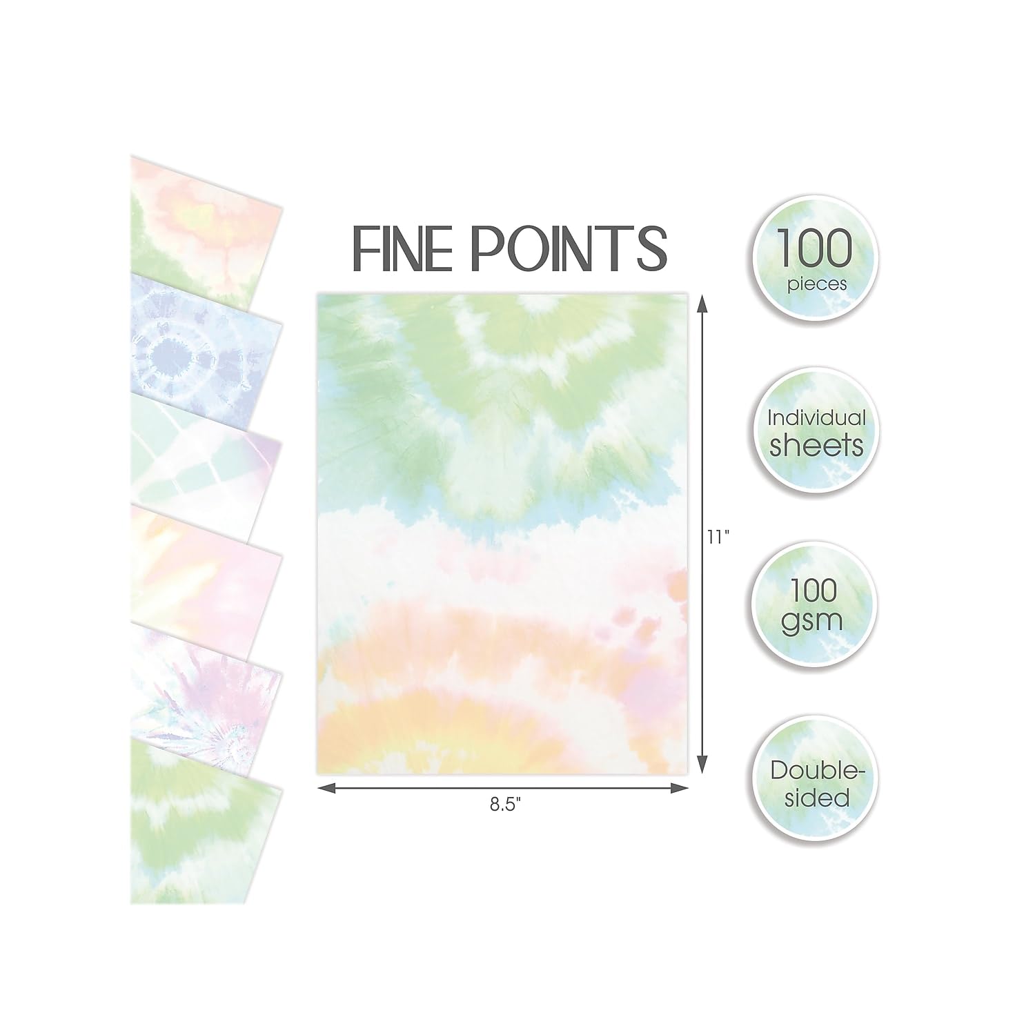 • 100-PACK – Letter size, 8.5″ x 11″ double-sided TIE-DYE watercolor designs in 6 unique print designs that allow your handwritten notes or printed text to standout