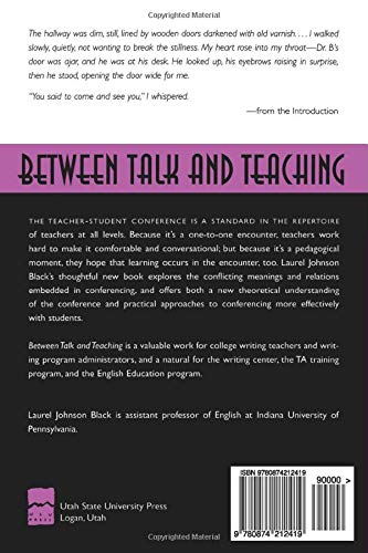 The teacher-student conference is standard in the repertoire of teachers at all levels. Because it’s a one-to-one encounter, teachers work hard to make it comfortable; but because it’s a pedagogical moment, they hope that learning occurs in the encounter, too. The literature in this area often suggests that a conference is a conversation, but this doesn’t account for a teacher’s need to use it pedagogically. Laurel Johnson Black’s new book explores the conflicting meanings and relations embedded in conferencing and offers a new theoretical understanding of the conference along with practical approaches to conferencing more effectively with students. Analyzing taped conferences of several different teachers and students, Black considers the influence that power, gender, and culture can have on a conference. She draws on sociolinguistic theory, as well as critical theory in composition and rhetoric, to build an understanding of the writing conference as an encounter somewhere between conversation and the classroom. She finds neither the conversation model nor versions of the master-apprentice model satisfactory. Her approach is humane, student-centered, and progressive, but it does not ignore the valid pedagogical purposes a teacher might have in conferencing. Between Talk and Teaching will be a valuable addition to the professional library of writing teachers and writing program administrators.