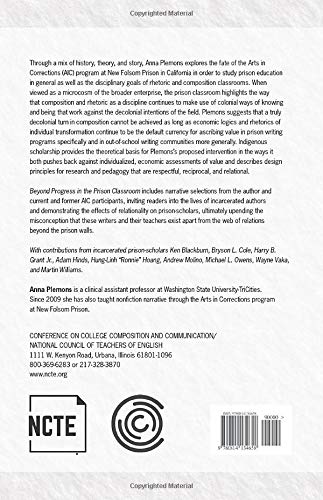 Through a mix of history, theory, and story, Anna Plemons explores the fate of the Arts in Corrections (AIC) program at New Folsom Prison in California in order to study prison education in general as well as the disciplinary goals of rhetoric and composition classrooms. When viewed as a microcosm of the broader enterprise, the prison classroom highlights the way that composition and rhetoric as a discipline continues to make use of colonial ways of knowing and being that work against the decolonial intentions of the field. Plemons suggests that a truly decolonial turn in composition cannot be achieved as long as economic logics and rhetorics of individual transformation continue to be the default currency for ascribing value in prison writing programs specifically and in out-of-school writing communities more generally. Indigenous scholarship provides the theoretical basis for Plemons’s proposed intervention in the ways it both pushes back against individualized, economic assessments of value and describes design principles for research and pedagogy that are respectful, reciprocal, and relational. Beyond Progress in the Prison Classroom includes narrative selections from the author and current and former AIC participants, inviting readers into the lives of incarcerated authors and demonstrating the effects of relationality on prison-scholars, ultimately upending the misconception that these writers and their teachers exist apart from the web of relations beyond the prison walls. With contributions from incarcerated prison-scholars Ken Blackburn, Bryson L. Cole, Harry B. Grant Jr., Adam Hinds, Hung-Linh “Ronnie” Hoang, Andrew Molino, Michael L. Owens, Wayne Vaka, and Martin Williams. About the CCCC Studies in Writing & Rhetoric (SWR) Series In this series, the methods of studies vary from the critical to historical to linguistic to ethnographic, and their authors draw on work in various fields that inform composition–including rhetoric, communication, education, discourse analysis, psychology, cultural studies, and literature. Their focuses are similarly diverse–ranging from individual writers and teachers, to classrooms and communities and curricula, to analyses of the social, political, and material contexts of writing and its teaching.