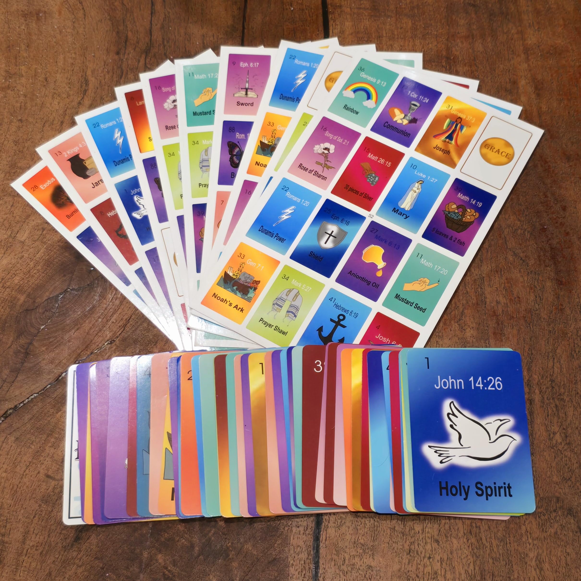 - Bible references and images on every player board