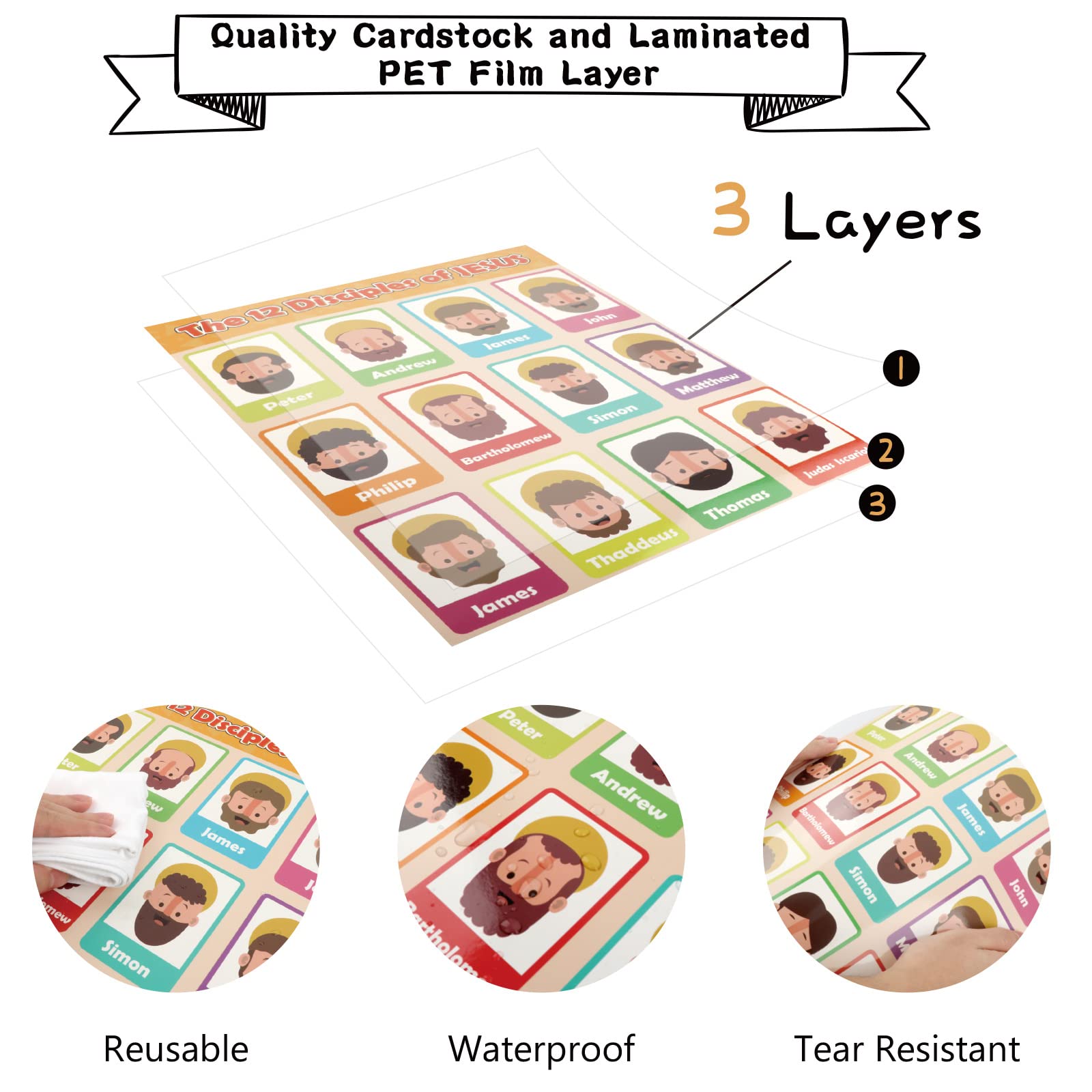 - [(High Quality)] Each poster measures 14*11inch/36*28cm.Our posters are made of quality cardstock and coated with laminated PET film layer, good enough for using as posters.It is waterproof, tear resistant, reusable and marks on it written by water-based dry erase markers could be erased.