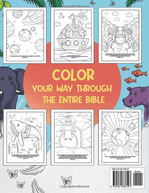 This coloring book supports religious education by teaching children Bible stories and scripture.