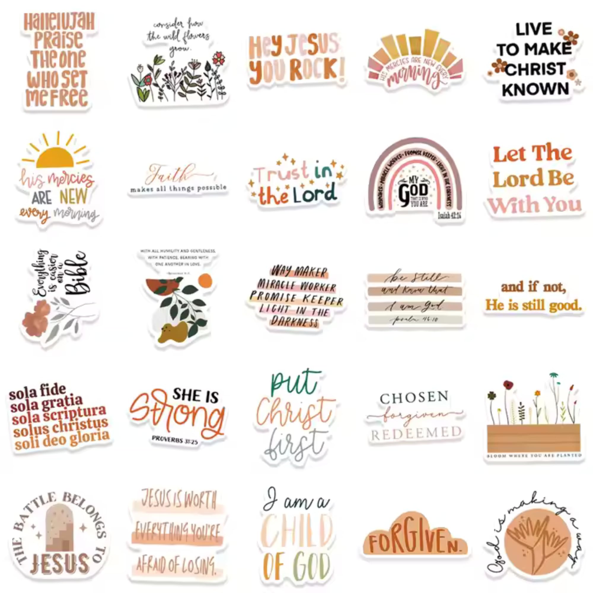 - A Variety of Christian Stickers: This collection of 50 Christian-themed stickers showcases diverse designs featuring Jesus, Bible verses, and uplifting messages. They are ideal for journaling, decorating water bottles, or adding a personal touch to Bibles and prayer boards.