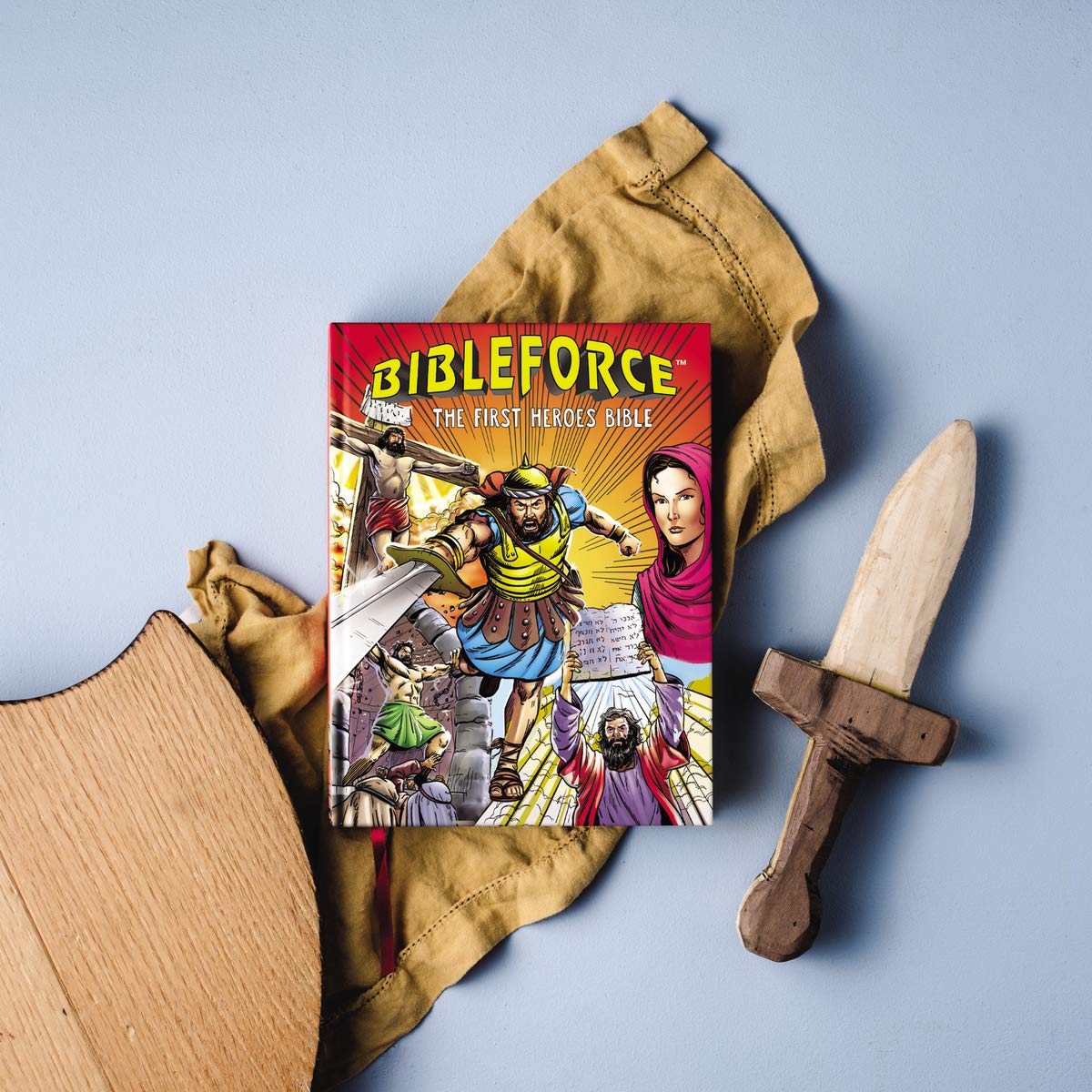 If your children are fans of comic books and graphic novels, they’ll enjoy reading about the action and adventures of biblical heroes retold in BibleForce. With captivating artwork and a fast-paced narrative, this Bible storybook shares nearly 200 stories of Scripture. BibleForce is perfect for: Readers, ages 6-10 Read aloud group sessions or solo reads Beginning honest discussions about the drama of the Bible with children Highlighting the amazing heroes of the Bible Every BibleForce purchase comes with free access to the BibleForce app, available on iTunes and Android. Children will enjoy: A child friendly overview of the Bible: the law, history, poetry & wisdom, and the prophets An easy-to-follow illustrated timeline of events Resourceful maps to help visualize locations and landmarks Kids will be fascinated by the thrilling drama of the Bible and the detail of the illustrations–they won’t be able to put down this exciting book. Jump into the story of God’s Word and discover the amazing heroes within its pages. Check out the rest of the series, BibleForce: The First Heroes Devotional.