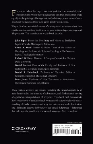 For years a debate has raged over how to define true masculinity and true femininity. While there is agreement that men and women share equally in the privilege of being made in God’s image, some views of manhood and womanhood blur God-given gender distinctions. Wayne Grudem assembled a team of distinguished writers to show how egalitarian views destroy God’s ideal for your relationships, marriage, and life purposes. The contributors to this book include: John Piper, Pastor of Bethlehem Baptist Church, Minneapolis, Minnesota Bruce A. Ware, Senior Associate Dean of the School of Theology and Professor of Christian Theology at The Southern Baptist Theological Seminary Richard W. Hove, Director of Campus Crusade for Christ at Duke University Daniel Doriani, Dean of the Faculty and Professor of New Testament at Covenant Theological Seminary Daniel R. Heimbach, Professor of Christian Ethics at Southeastern Baptist Theological Seminary Peter Jones, Professor of New Testament at Westminster Theological Seminary in California These writers explore key issues, including the interchangeability of male-female roles, the meaning of submission, and the historical novelty of egalitarian interpretations of Scripture. This book will demonstrate how some views of manhood and womanhood tamper with our understanding of God’s character and why the extremes of male domination and feminism destroy the beauty of our sexual differences-differences that celebrate the excellence of men and women as God created us.