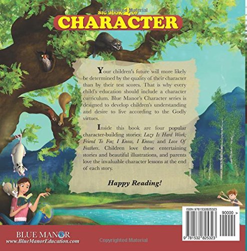 Your children’s future will more likely be determined by the quality of their character than by their test scores. That is why every child’s education should include a character curriculum. Blue Manor’s Character series is designed to develop children’s understanding and desire to live according to the Godly virtues. Inside this book are four popular character-building stories: Lazy Is Hard Work; Friend To Foe; I Know, I Know; and Love Of Feathers. Children love these entertaining stories and beautiful illustrations, and parents love the invaluable character lessons at the end of each story. Happy Reading!