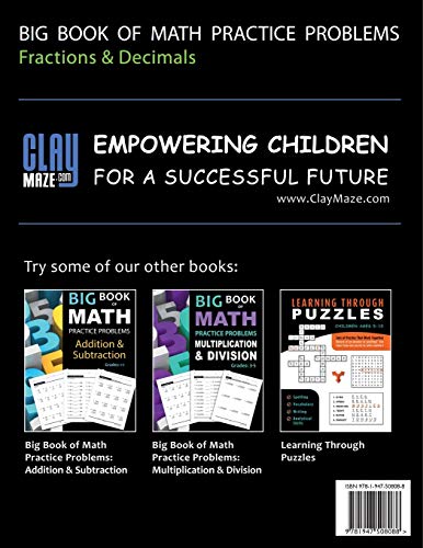 Big Book of Math Practice Problems Fractions and Decimals: Practice Workbook on Fractions and Decimals with Solutions – Includes Fraction and Decimal … Comparing, Rounding, Percent and more