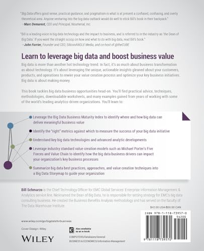 Leverage big data to add value to your business Social media analytics, web-tracking, and other technologies help companies acquire and handle massive amounts of data to better understand their customers, products, competition, and markets. Armed with the insights from big data, companies can improve customer experience and products, add value, and increase return on investment. The tricky part for busy IT professionals and executives is how to get this done, and that’s where this practical book comes in. Big Data: Understanding How Data Powers Big Business is a complete how-to guide to leveraging big data to drive business value. Full of practical techniques, real-world examples, and hands-on exercises, this book explores the technologies involved, as well as how to find areas of the organization that can take full advantage of big data. Shows how to decompose current business strategies in order to link big data initiatives to the organization’s value creation processes Explores different value creation processes and models Explains issues surrounding operationalizing big data, including organizational structures, education challenges, and new big data-related roles Provides methodology worksheets and exercises so readers can apply techniques Includes real-world examples from a variety of organizations leveraging big data Big Data: Understanding How Data Powers Big Business is written by one of Big Data’s preeminent experts, William Schmarzo. Don’t miss his invaluable insights and advice.