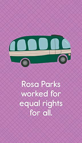 Discover 26 historical icons with these beautifully illustrated flashcards featuring inspirations like Rosa Parks, Marie Curie, Amelia Earhart, Abraham Lincoln, Mahatma Gandhi, Pablo Picasso, and more. This lovely set of 26 flashcards is connected by a removable plastic ring, making it the perfect activity for on-the-go fun or free play. The large size (5 inches by 2.85 inches) and sturdy material are ideal for the little fingers of curious babies and toddlers. Packaged in a 9 x 7.5-inch window box with flap.