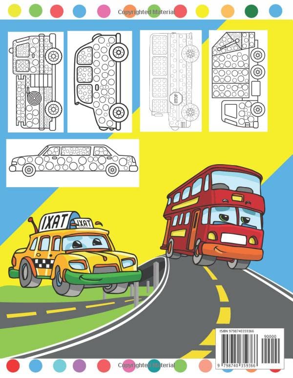 This is Big Edition Cars Dot Markers Activity Book Make the perfect gift for your kid who loves coloring! *This book is designed to develop the creativity of our children* *Click the cover to reveal what’s inside!* About this book: 94Pages Include: Monster Trucks, Taxi, Cars, School Bus, Fire Truck, Limousine, Garbage Truck, Construction Vehicles – Cement Truck, Excavator, Dozer, Loader, Road Grader, Tractor, Ambulance Car Beautiful designs appropriate for ages 2-6 Full page, detailed designs, no repeats Printed on high quality solid white paper Each page is professionally composed Full 8.5″ x 11″ size Single-sided pages so your little one can use markers without the nuisance of bleed-through. Coloring is a great way for kids to relax and express themselves creatively Glossy softcover 30 days return guaranteed Big Edition Cars Dot Markers Activity Book is Perfect for: Birthday Gifts Summer Travel & Vacation Fun Halloween Easter Gifts & Basket Stuffers Christmas Gifts & Stocking Stuffers Holiday & Break Time Children’s Day St Patrick’s day Put a SMILE on your CHILD’s face! Scroll up and BUY NOW!