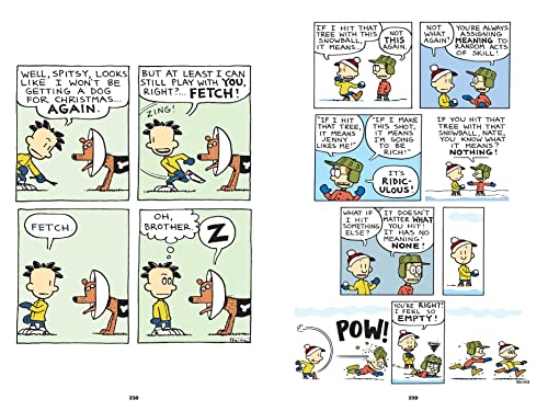 This exciting volume of Big Nate adventures includes all of the comics from Revenge of the Cream Puffs and What’s a Little Noogie Between Friends? Two books in one! This bind-up features two books from the bestselling Big Nate series. Big Nate: Revenge of the Cream Puffs: Here come the Cream Puffs! Nate and his baseball team, saddled with the most embarrassing moniker in Little League history, want to show the world they’re not just a bunch of cupcakes. But it won’t be easy. Their opponents mock them. The local sports section misprints Nate’s name–THREE TIMES. And now, on the day of the big game, illness and injuries have the team facing a crushing defeat . . . unless the unlikeliest Cream Puff of all can come in from the bullpen and save the day. With a softhearted pitcher who channels his inner panda, a vengeful girlfriend who swings for the fences, and a healthy dose of Nate Wright mojo, the Cream Puffs just might have what it takes to stage an epic comeback. So grab a glove, smear on some eyeblack, and get in the game. You don’t want to miss a single moment of Revenge of the Cream Puffs! Big Nate: What’s a Little Noogie Between Friends? Nate Wright’s a winner–in his own mind, anyway. So when things go wrong, he’s at a loss to explain why. How does his soccer team manage to lose to a school with a sixty-game winless streak? What’s he doing at the movies on a Friday night . . . with GINA? And why, oh why is one of his classmates (hint: she’s Nate’s dream girl) suddenly moving 3,000 miles away? It’s all enough to make a sixth-grade superstar feel . . . well, not so super. But you can’t keep a good man down, and Nate’s still got pals like Teddy, Francis, and Chad to cheer him up. Sure, their methods aren’t always warm and fuzzy, but Nate doesn’t mind. After all, what’s a little noogie between friends?