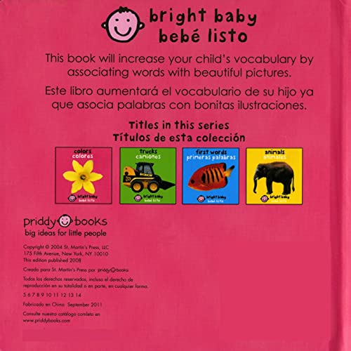 From #1 bestselling children’s book author and educator, Roger Priddy’s Bilingual Bright Baby: Colors This book will increase your child’s vocabulary by associating words in Spanish and English with beautiful pictures. Este libro aumentara el vocabulario de su hijo ya que asocia palabras en Espanol y Ingles con bonitas ilustraciones.