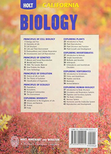 Holt Biology is the result of the latest developments in biology and the teaching of biology, with complete content emphasized throughout. Lower-ability students get the thorough, accurate explanations and instructions they need to develop a solid foundation in the fundamentals. Advanced students find challenge in the depth of open-ended activities and critical-thinking questions.