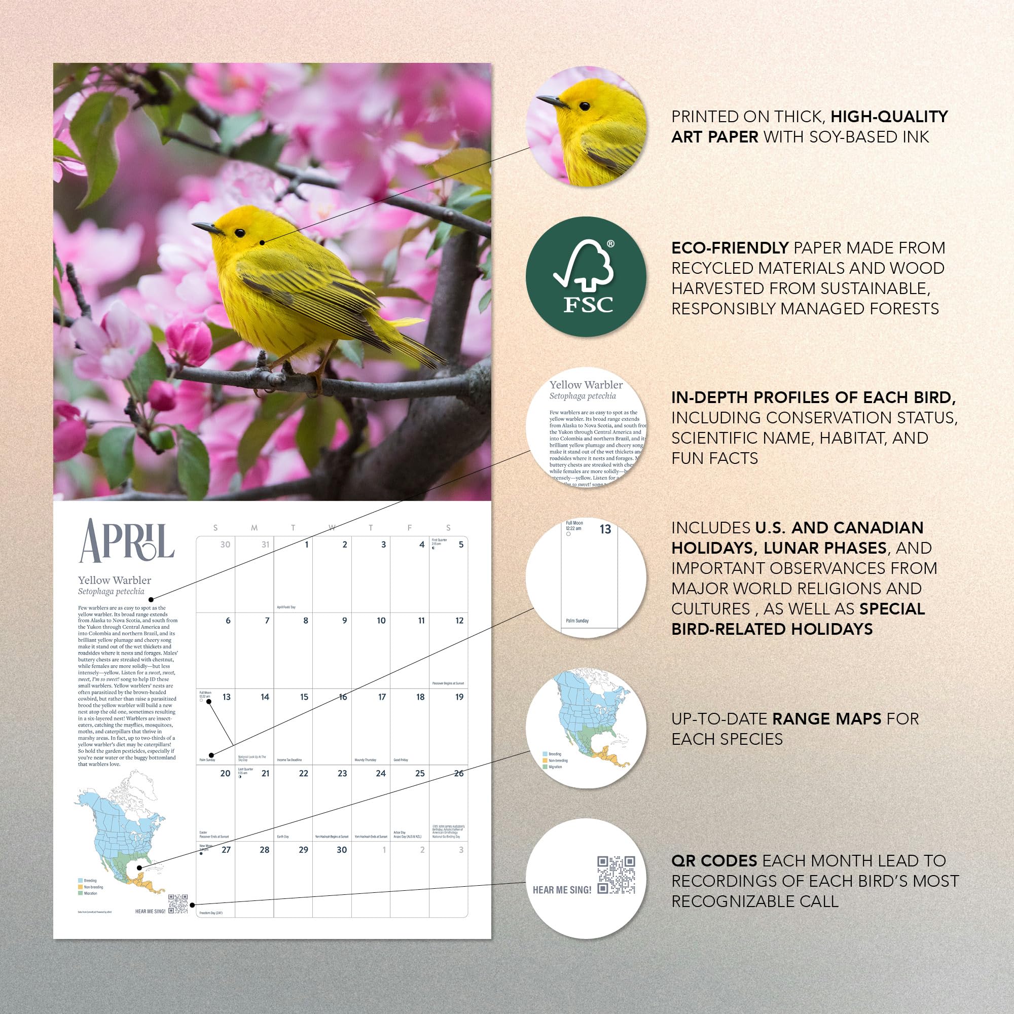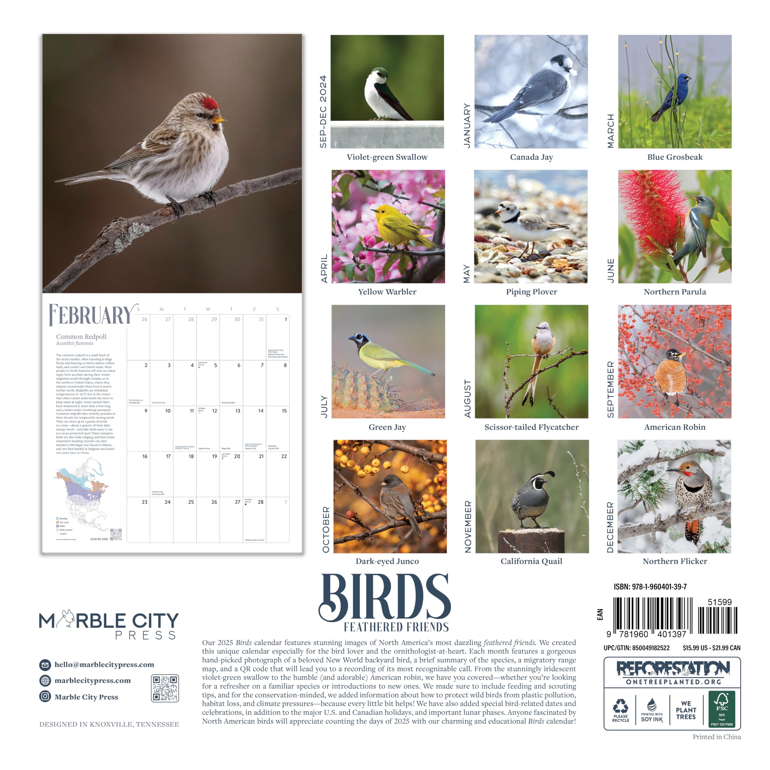 Bird Wall Calendar 2025 | 12″ x 24″ Birds: Feathered Friends 12 Month | Marble City Press | Backyard Ornithologist Garden Songbird | Bird Migration Map Educational QR Codes | 2024-2025 Calendar