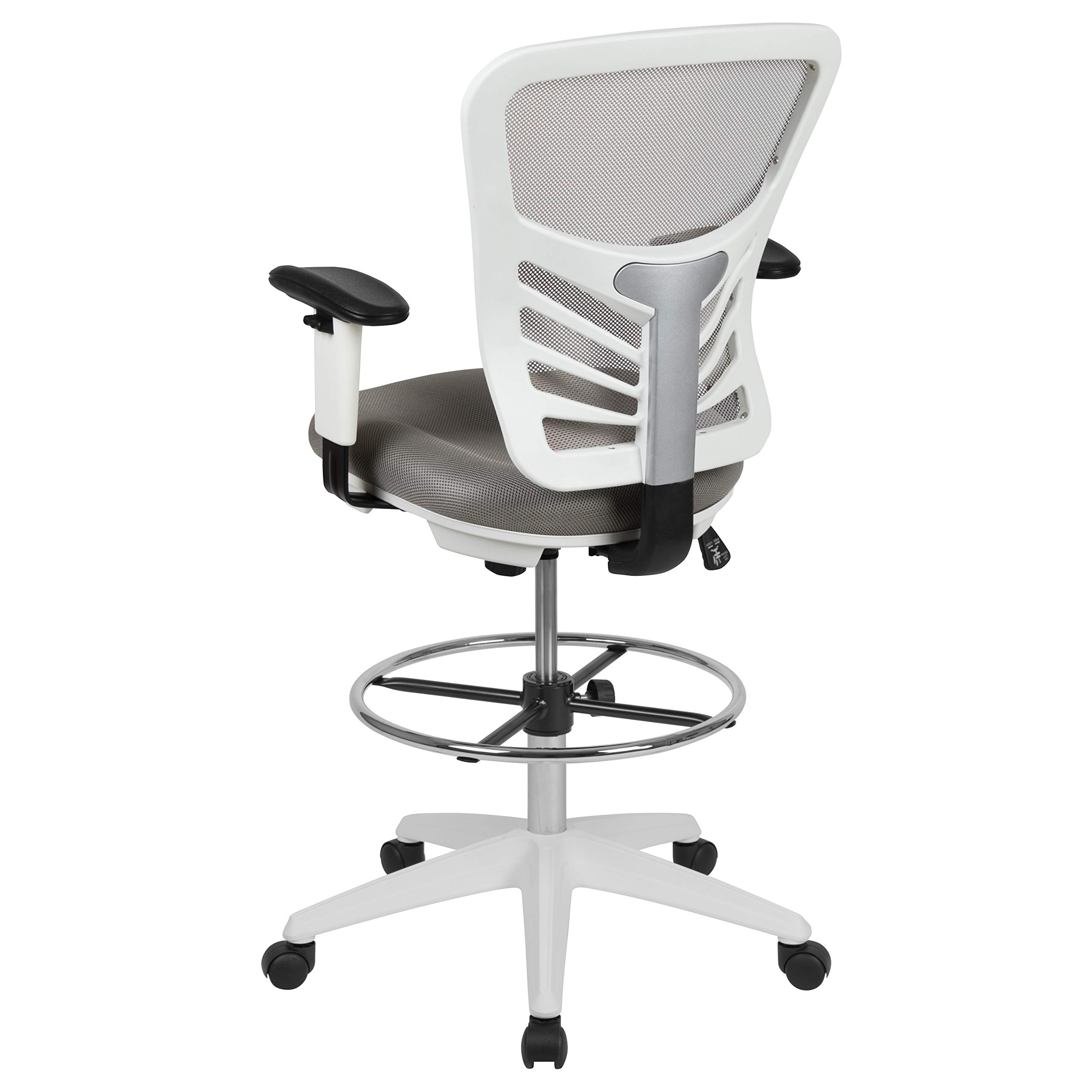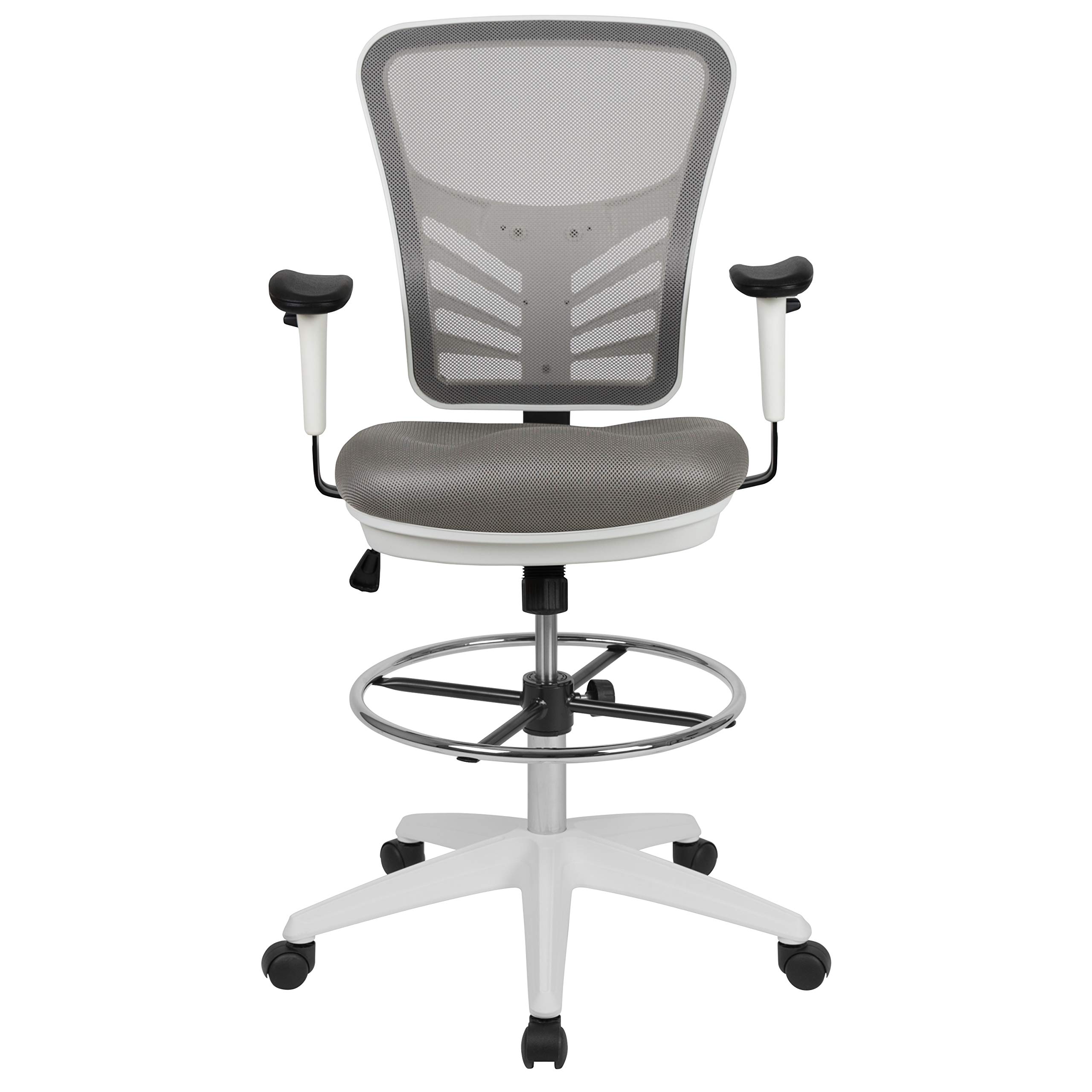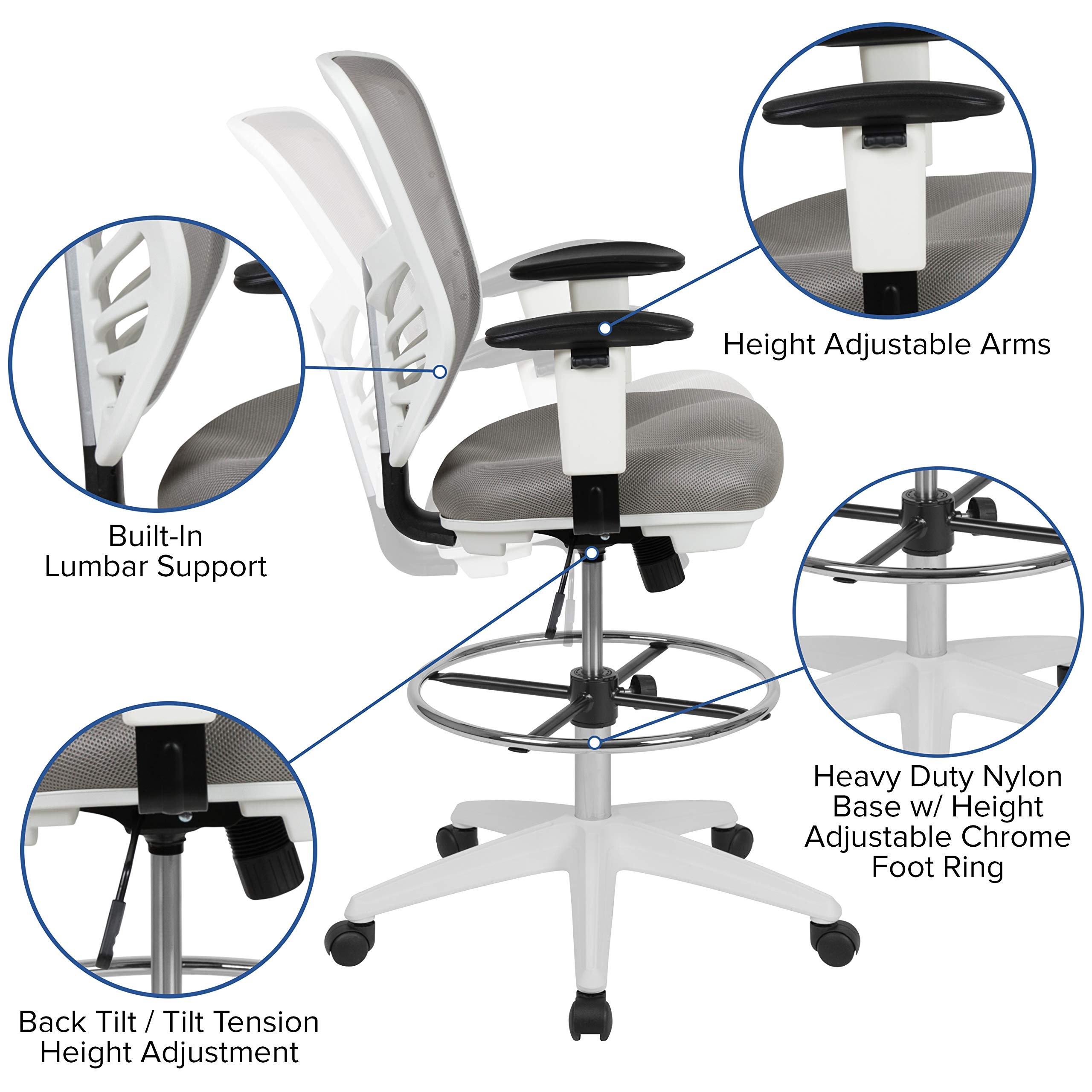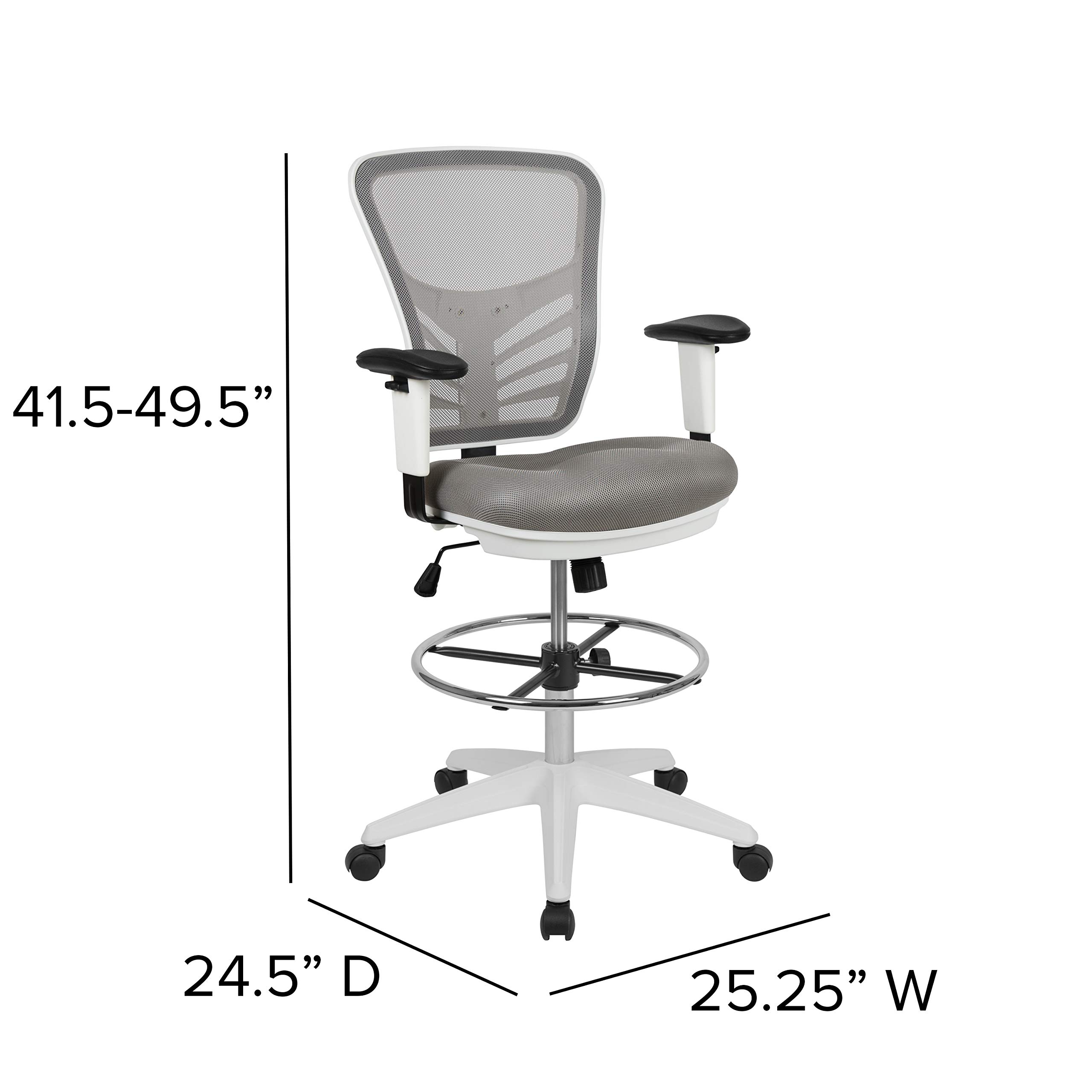 BizChair Mid-Back Gray Mesh/White Frame Adjustable Ergonomic Drafting Chair, Task Chair