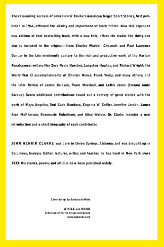 The success of John Henrik Clarke’s American Negro Short Stories, first published in 1966, affirmed the vitality and importance of black fiction. Now this expanded edition of that best-selling book, with a new title, offers the reader thirty-one stories included in the original–from Charles W. Chesnutt and Paul Laurence Dunbar in the late nineteenth century to the rich and productive work of the Harlem Renaissance: writers like Zora Neale Hurston, Langston Hughes, and Richard Wright; the World War II accomplishments of Chester Himes, Frank Yerby, and many others; and the later fiction of James Baldwin, Paule Marshall, and LeRoi Jones (Imamu Amiri Baraka). Seven additional contributions round out a century of great stories with the work of Maya Angelou, Toni Cade Bambara, Eugenia Collier, Jennifer Jordan, James Allan McPherson, Rosemarie Robotham, and Alice Walker. Dr. Clarke has included a new introduction to this 1993 edition, and a short biography of each contributor.