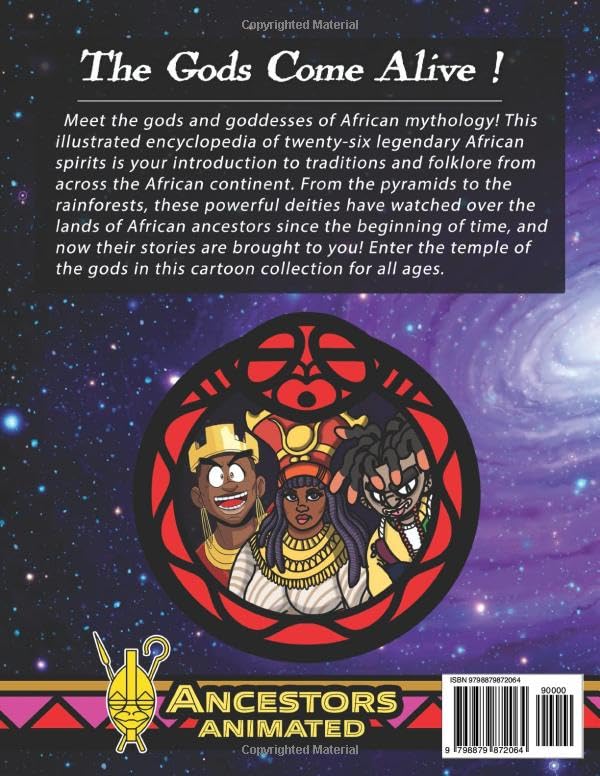 The African Gods come alive! Meet the gods and goddesses of African mythology! This illustrated encyclopedia of twenty-six legendary African spirits is your introduction to traditions and folklore from across the African continent. From the pyramids to the rainforests, these powerful deities have watched over the lands of African ancestors since the beginning of time, and now their stories are brought to you! Enter the temple of the gods in this cartoon collection for all ages.