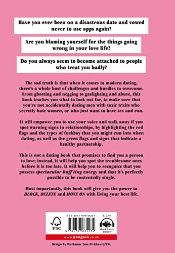 Have you ever been on a disastrous date and vowed never to use apps again?Are you blaming yourself for the things going wrong in your love life?Do you always seem to become attached to people who treat you badly?The sad truth is that when it comes to modern dating, there are a whole host of challenges and hurdles to overcome. From ghosting and negging to gaslighting and abuse, this book teaches you what to look out for, to make sure that you’re not accidentally dating men with toxic traits who secretly hate women, or who just want to have sex and run.It will empower you to use your voice and walk away if you spot warning signs in relationships, by highlighting the red flags and the types of fuckboy that you might run into when dating, as well as the green flags and signs that indicate a healthy partnership.This is not a dating book that promises to find you a person to love; instead, it will help you spot the troublesome ones before it is too late. It will help you to recognise that you possess spectacular buff ting energy and that it’s perfectly possible to be contentedly single.Most importantly, this book will give you the power to BLOCK, DELETE and MOVE ON with living your best life.