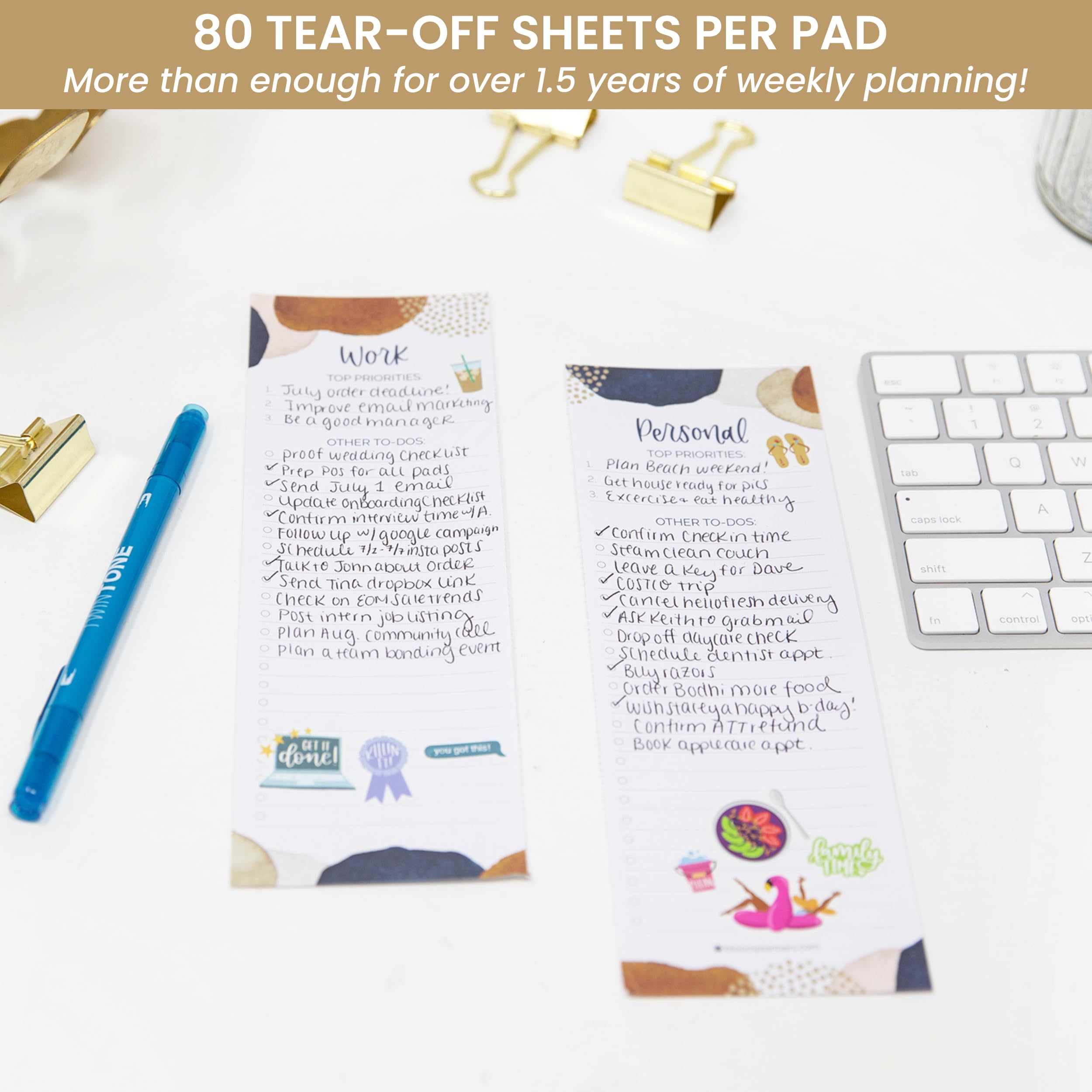 80 tear off sheets per pad. Use daily, weekly, or as needed