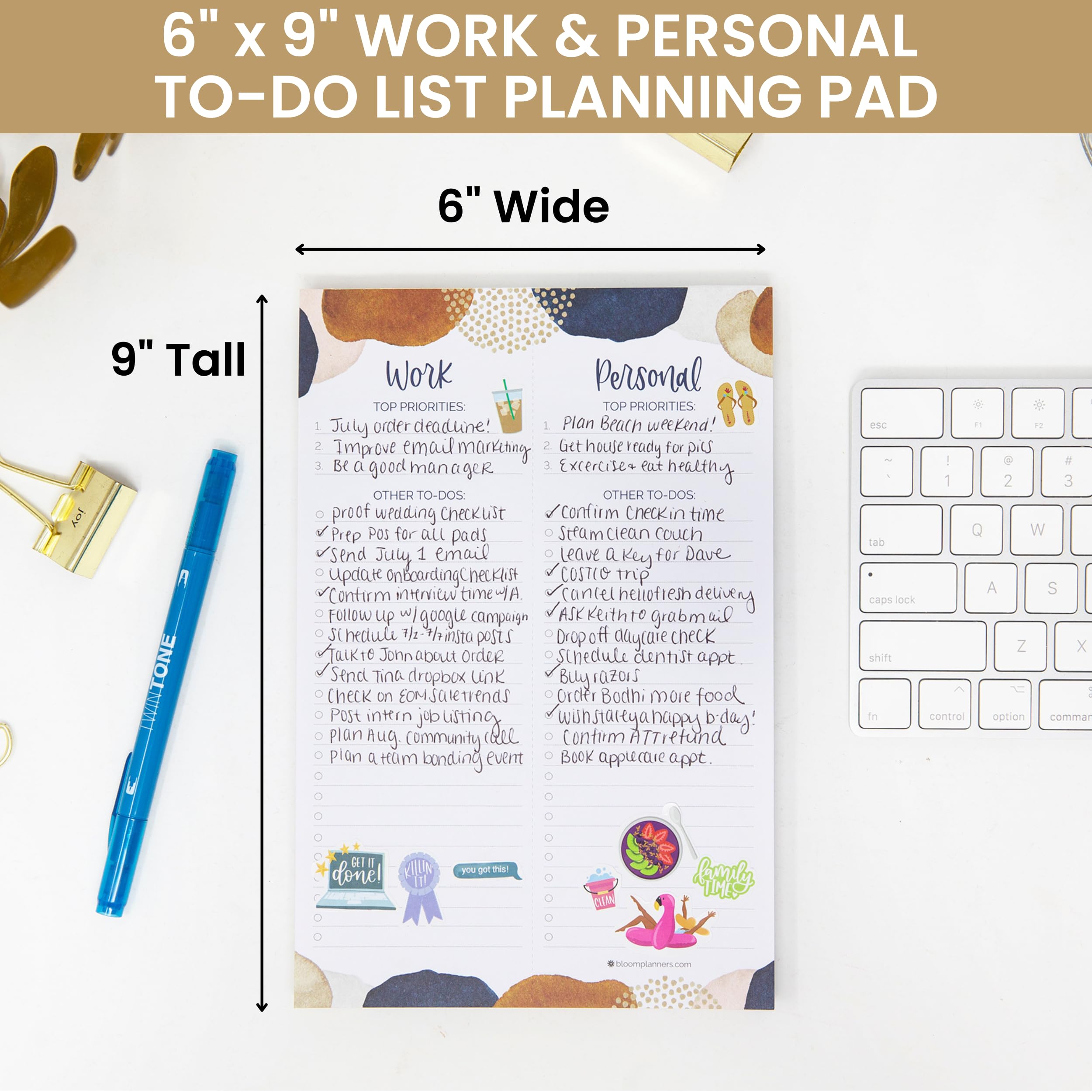 bloom daily planners Work & Personal To Do List Planning Pad – Undated Tear Off Checklist Notepad Organizer with Perforated Sheets – 6″ x 9″ – Earthy Abstract