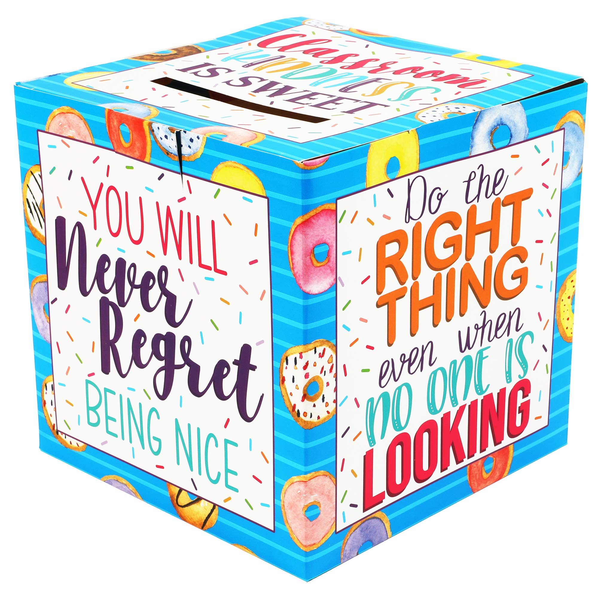 Invite your students to put their messages of kindness into this motivational mailbox for the classroom. The thick paper construction provides a long-term home for school year notes. This cardholder has motivational quotes such as “you will never regret being nice” on the outside and a slot at the top. You’ll receive 50 peer recognition kindness cards and 1 cube mailbox.