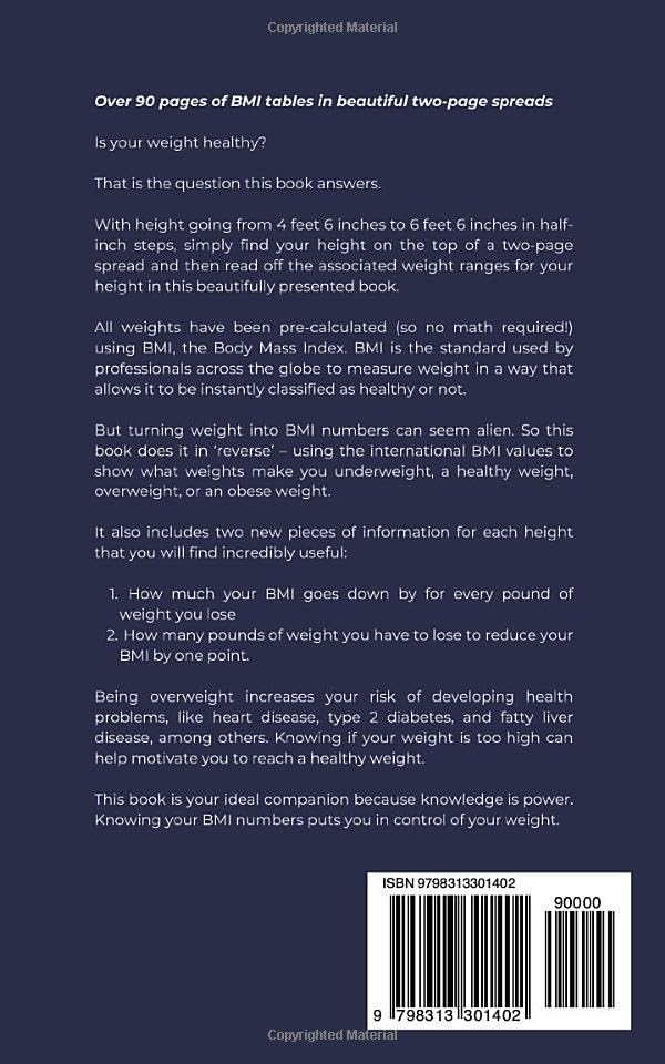 This book of BMI tables serves as a reference material for health and physical education studies.
