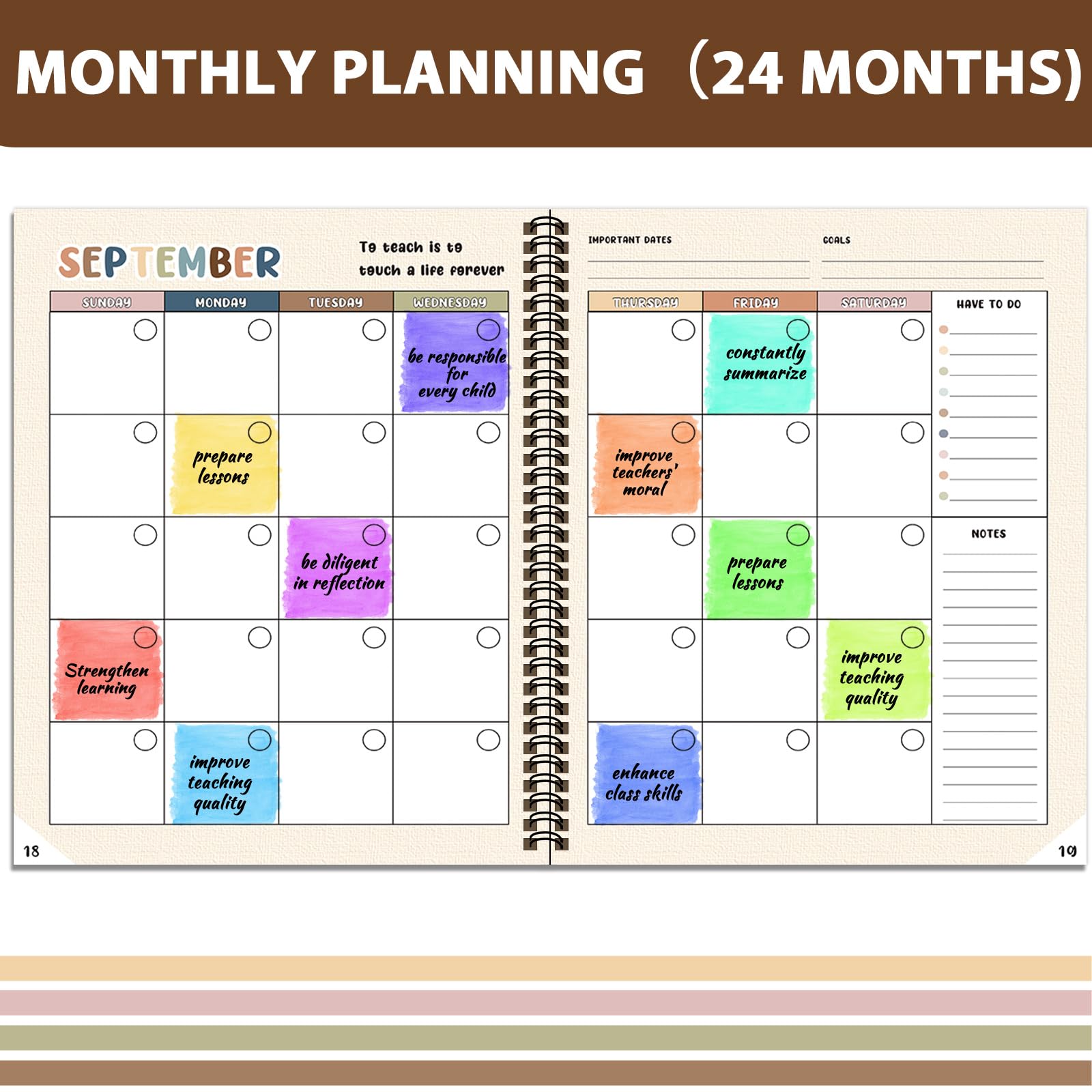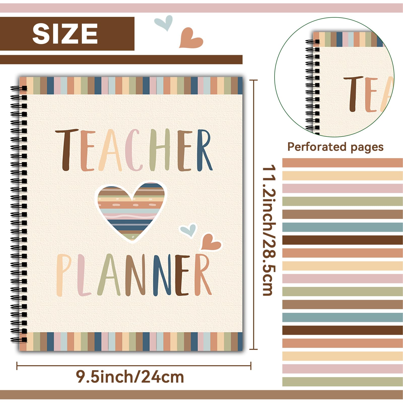 Boho rainbow teacher planner, annual planner with calendar and lesson plan office supplies for classroom or homeschool Teacher Lesson Planner 9”X11” (135 Pages). Package includes: A Teacher Plan Book contains 135 pages and 4 sheets colorful stickers. Material: paper. Feature: Made of high quality log paper material. Custom planning to meet your needs. Lay flat with spiral binding for easy rewriting. The paper is non-toxic, odorless, smooth and not easy to break.