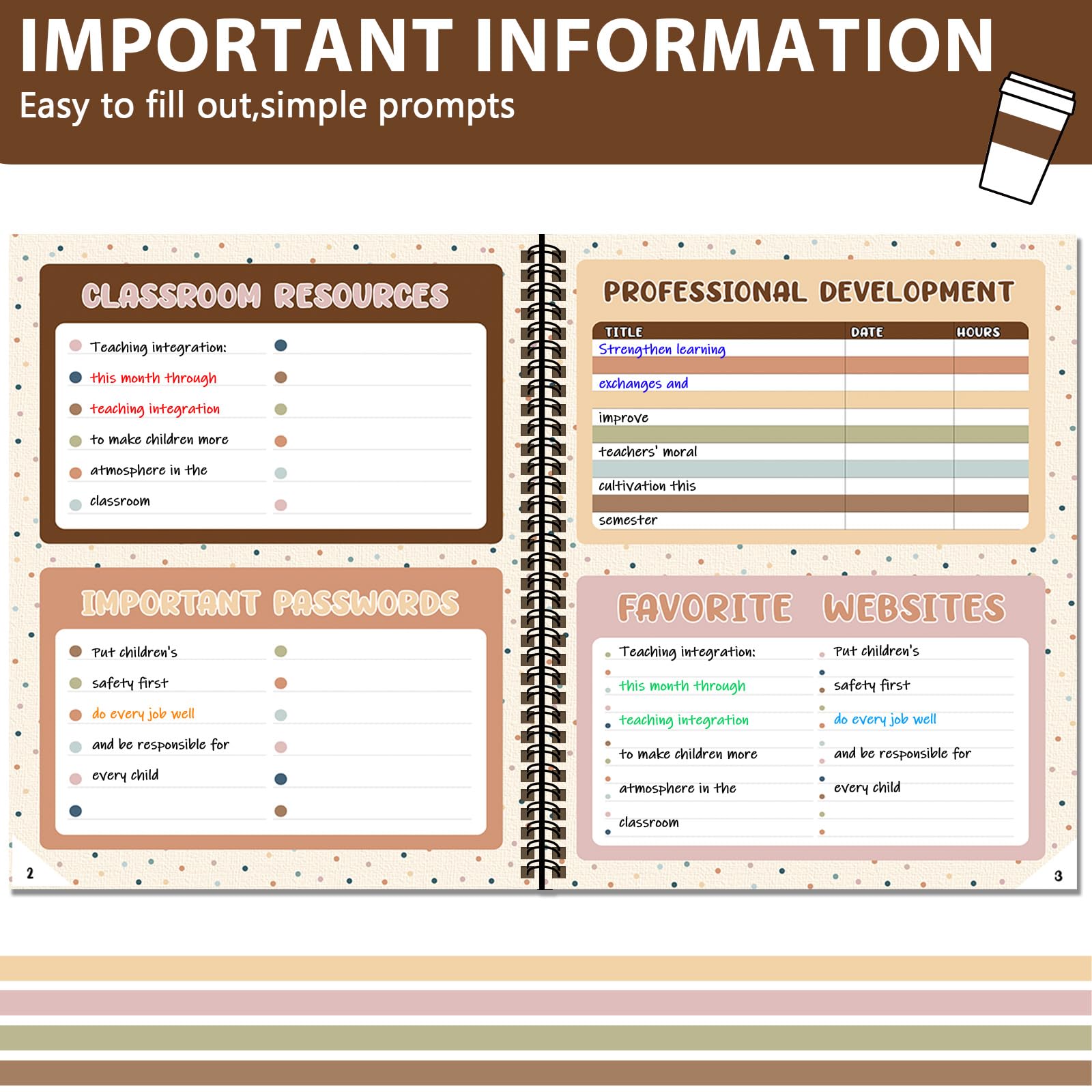 - Beautiful Design: Lesson Plans for Teachers have neat grid pages, enough to fill in the information. The exterior design adopts the boho style, and the overall color is warm, with hearts, polka dots and stars added. Cups and other patterns make people fall in love with records.