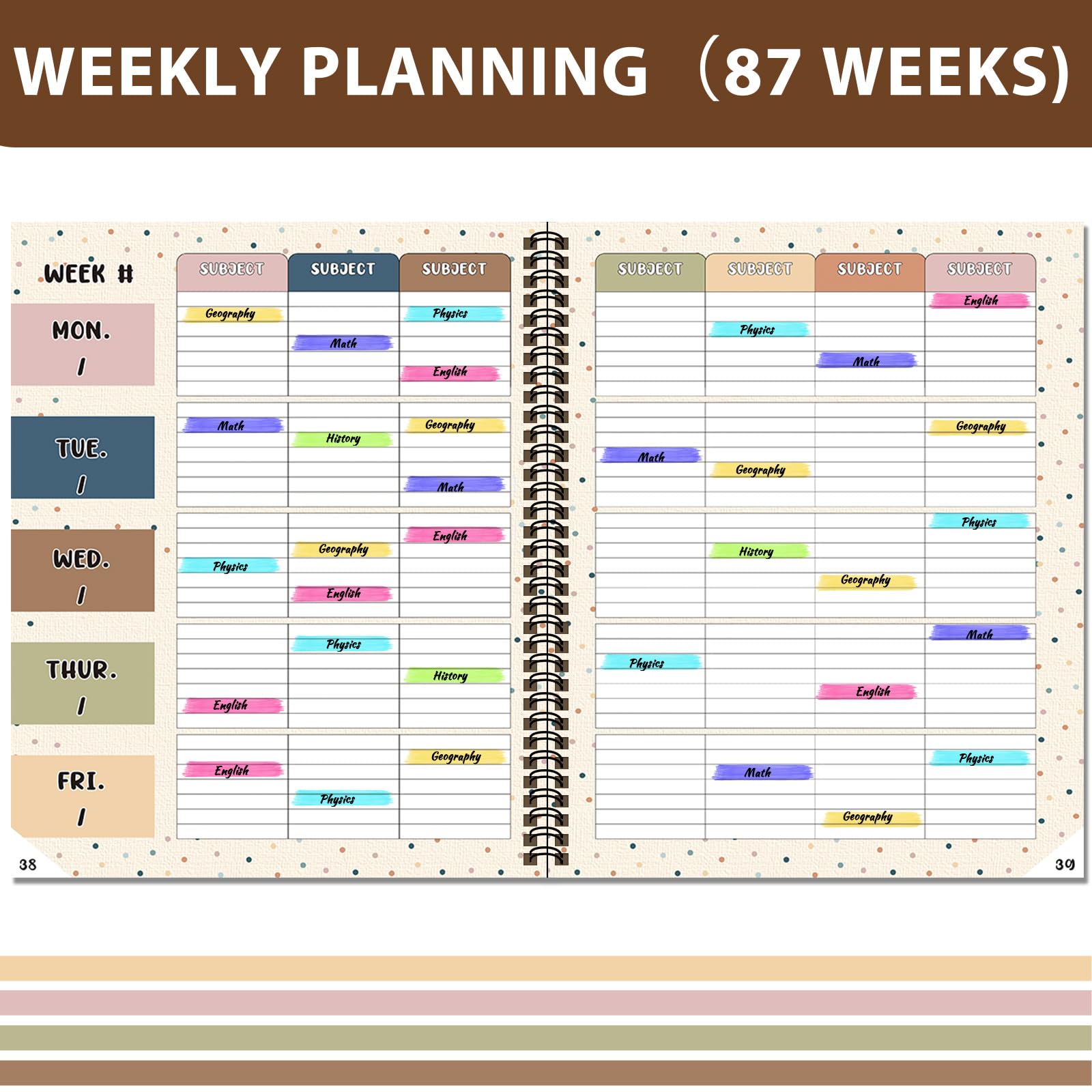 - Custom planning to meet your needs: .Design your own teacher plan needs according to each teacher’s own plan, which can be adjusted according to specific needs. Checklists can be used as attendance sheets or grading sheets, and weekly spreads for lesson plans provide plenty of room for extra notes.