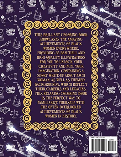 Celebrate the world’s most famous black women with this unique and wonderful coloring book. Do you want to learn more about incredible black women throughout history? Are you searching for a stunning coloring book with one-of-a-kind portraits for you to color? Then this book is for you! This brilliant coloring book showcases the amazing achievements of black women everywhere, providing 25 beautiful and high-quality illustrations for you to unlock your creativity and fuel your imagination. Containing a short write-up about each woman, as well as themed backgrounds, which reflect their careers and legacies, this relaxing coloring book is the perfect way to familiarize yourself with the often-overlooked achievements of black women in history.. Including renowned sports stars, music icons, nurses, political figures, activists, actresses, and even women in the military, Bold Women In Black History is great for relaxation, as a teaching aid, and even as a way to celebrate Black history month. Book details: Features 25 Gorgeous, Unique Illustrations of Famous Black Women High-Quality Paper Which is Suitable For All Pen, Pencil and Marker Types Makes a Wonderful Teaching Aid To Familiarize Yourself With the Achievements of Black Women Brilliant for Adults and Children Alike, Including Schools and Daycares Helps You Practice Relaxation, Relieve Stress, and Experience the Benefits of Mindfulness And Much More! Don’t let the legacies of these remarkable women go forgotten. Now you can unleash your inner artist as you discover every new portrait! Scroll up and buy now to begin celebrating the achievements of history’s most memorable black women today!