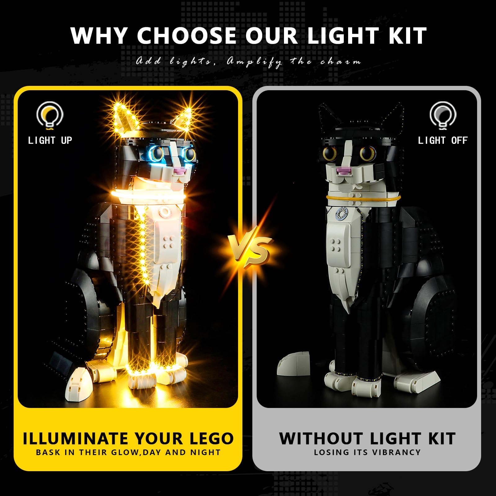 Designed for Lego 21349: This BOOZUU light kit is perfectly tailored for the Lego Ideas 21349 Tuxedo Cat building set. It enhances the charm of your model and fits seamlessly into your display scene.