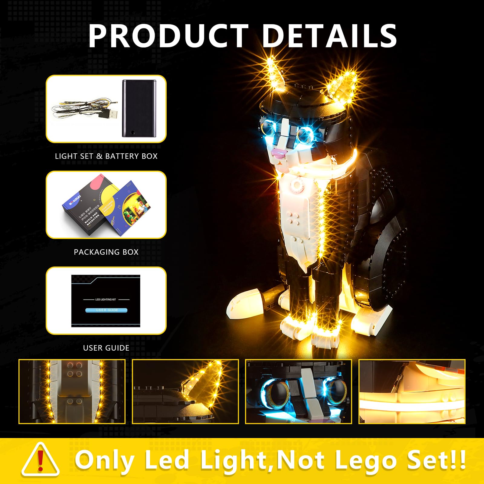 Safe and Durable: Using low-voltage components (below 5V/1A), the light set is safe and durable. Enjoy a worry-free upgrade to your Tuxedo Cat Lego 21349 display.