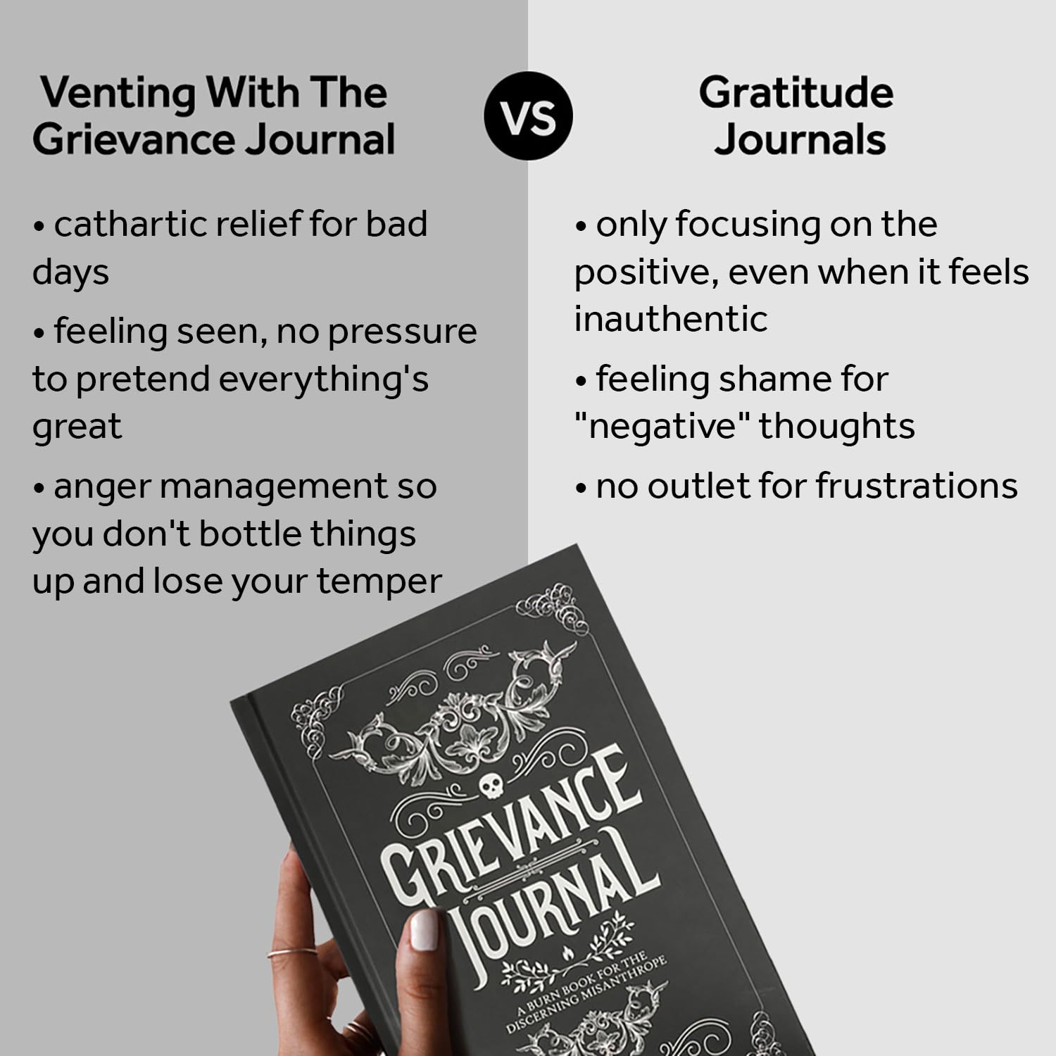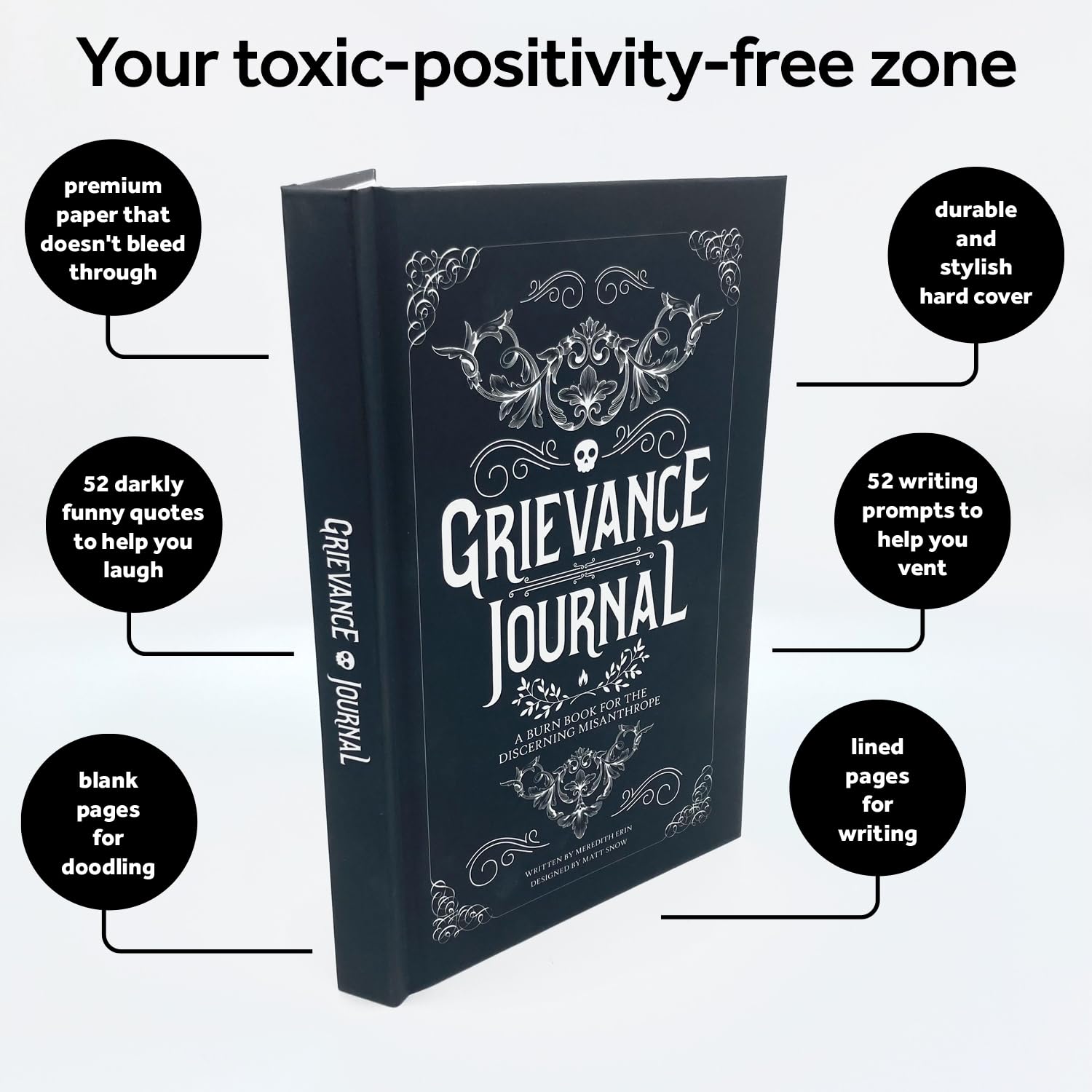 - Grievance Journal features 52 distinct writing prompts to help you do some vent writing, and 52 darkly funny quotes to help you laugh