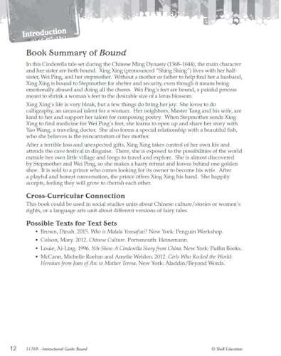 This instructional guide for literature provides engaging lesson plans and activities for students as they read bound, a critically acclaimed ya Fiction novel that takes place in Ancient China and puts a spin on the classic cinderella fairy tale. This valuable resource guides teachers with ways to add rigor with complex literature. Text-dependent questions help students analyze the text with higher-order thinking skills, with lessons focused on story elements, vocabulary, and more. Close reading activities throughout the literature units encourage students to use textual evidence as they revisit passages to respond more critically. With various methods of assessing comprehension, this instructional guide offers strategies for cross-curricular activities as students build a greater understanding of this great Literary work.