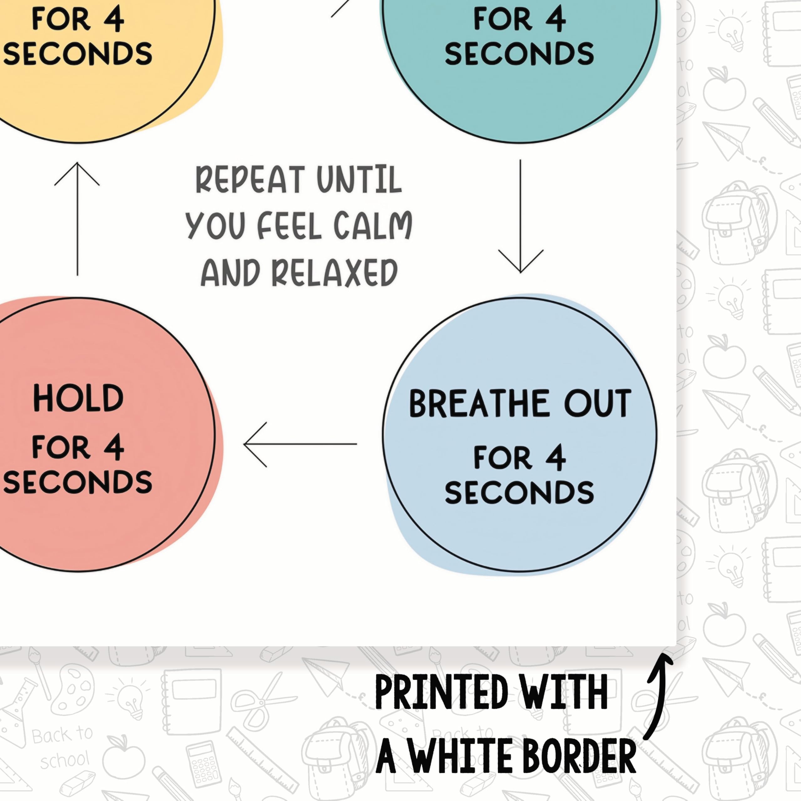 This poster provides a clear visual guide for the box breathing technique, aiding students in managing stress and improving focus.