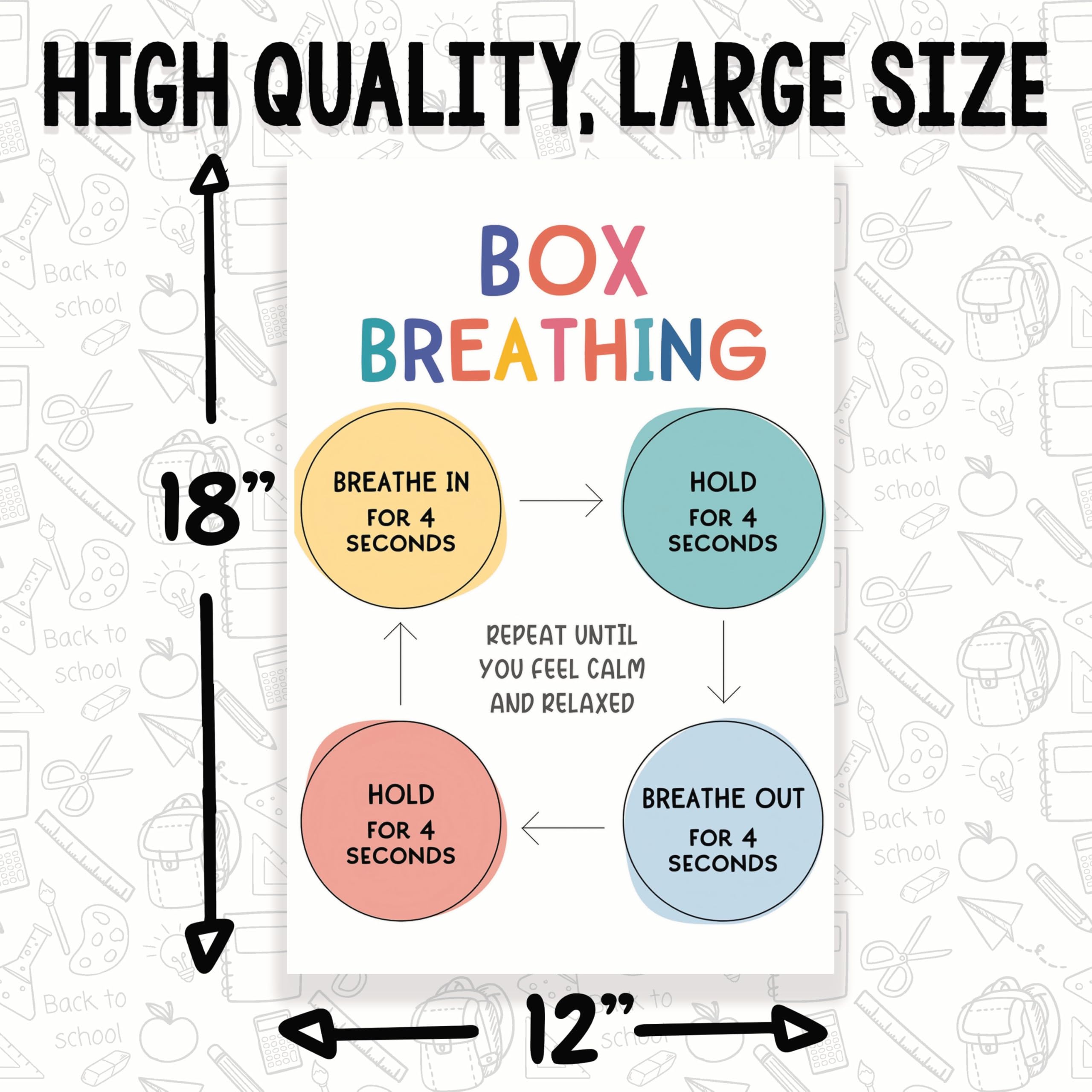 Box Breathing Poster – Breathing Exercises – Positive Mental Health – Counselor Therapist Office – 12 x 18 Inch – Classroom Decor – Must Haves – Back To School – CPS0126