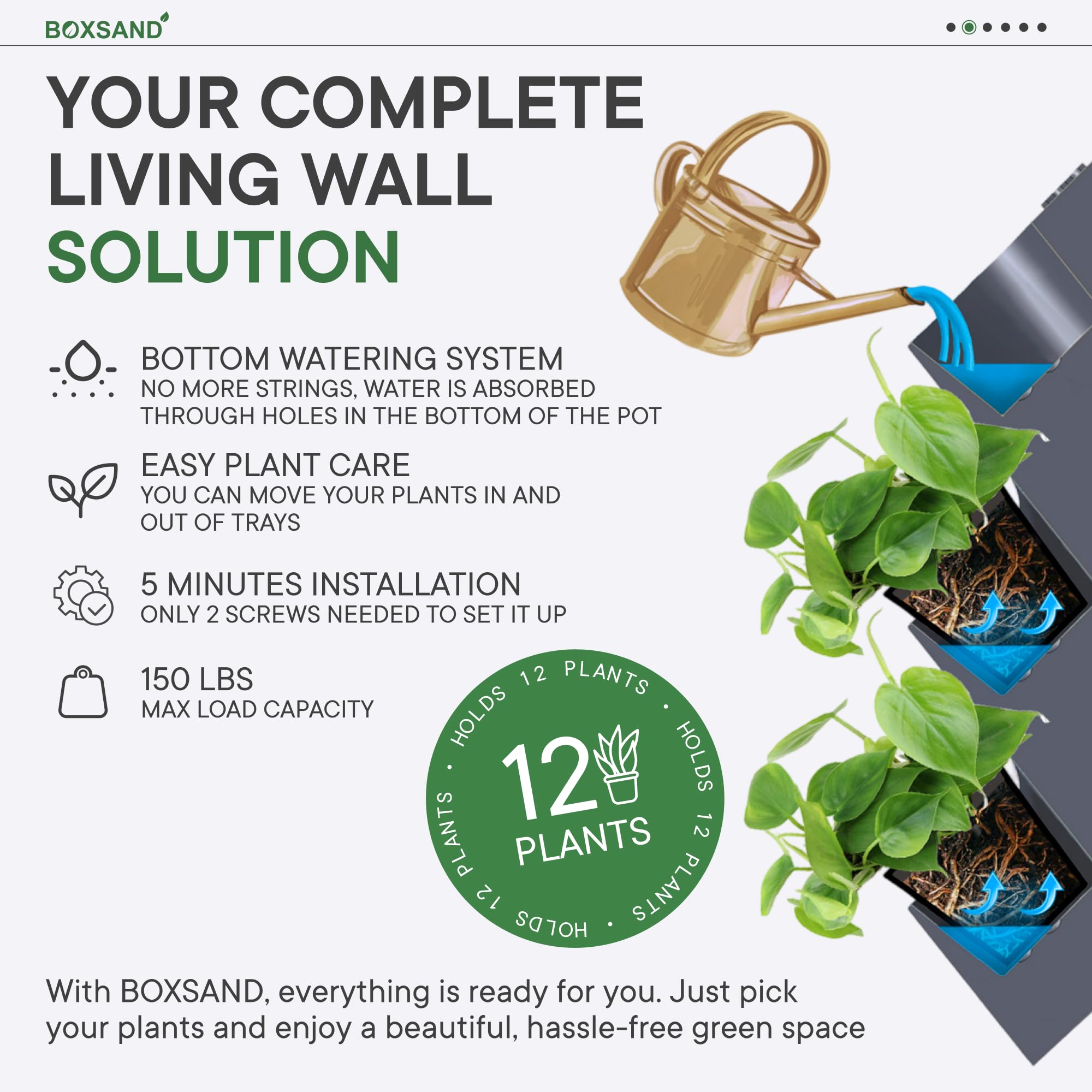 - Match several planters together for covering large Wall areas. You can Move and change Plants around and create your own unique design